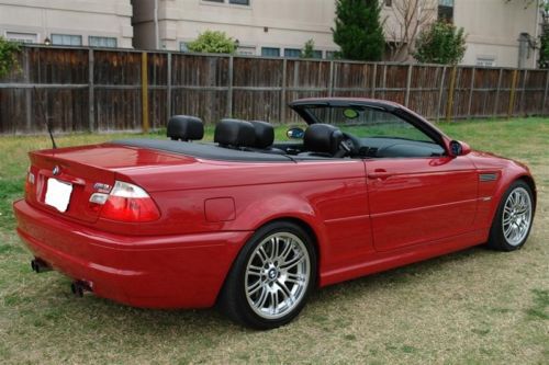 Here is the most wanted 2001 BMW M3 Convertible in Imola Red with Black leather interior and top. State of art and intelligence is the phrase to describe this ultimate driving machine. The new M3 convertible, based on the delectable current-generation 3 Series, is propelled by the magnificent 3.2-liter engine, with 333 thundering horses coming from a single bank of six cylinders. Capped with a six-speed manual transmission, all that horsepower and the 262 foot-pounds of torque (at 4,900 rpm) is good enough to propel the 3,781-pound M3 convertible to 60 mph in just 5.4 seconds, according to BMW. But an exhilarating driving experience involves more than mere speed, and the dynamics of the M3 have car reviewers frothing at the mouth to describe the joy derived from piloting this vehicle. From its communicative steering and near-perfectly balanced chassis to the compliant-yet-firm ride, this Bimmer, like most others, will have you searching for that elusive twisty road upon which to spool the revs and extract that stunning exhaust note. Standard features for this convertible M3 include Bucket Seats, Center Console, Power Heated Mirrors, Keyless Entry System, Lighted Entry System, Power Brakes, Rear Window Defroster, Sport Power Seats, Premium Audio System, 18 Inch Alloy Wheels, Automatic Climate Control (2 Zone) - Driver and Passenger, 3.2L I6 DOHC 24V FI Engine, Power Driver Seat w/Memory, Limited Slip Differential (Rear), 6-Speed Manual Transmission, Trip Computer, Stability Control, Traction Control, 4-Wheel ABS, Driver and Passenger Front Airbags, Front Side Airbags, Anti-Theft Alarm System, Leather Seats, Power Front Passenger Seat, Audio Steering Wheel Controls, Cruise Control, Power Steering, Remote Trunk Release, Leather Steering Wheel Trim, Electrochromatic Rear View Mirror, Power Convertible Roof and much more.. heated power-adjustable sport bucket seats, rain sensor; these are optional on this beauty. Other options include a cold weather package that includes a ski bag, heated front seats and headlight washer system that'll make the cars more palatable during the winter months as is a CD player w/ harmon/kardon sound system, for crying out loud. Listed for sale locatlly. I reserve the right to end the auction early if the asking price is met. |