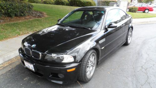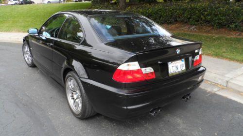 FOR SALE IS A VERY CLEAN 2002 BMW M3 COUPE WITH ONLY 85,796 ORIGINAL MILES, FULLY OPTIONED WITH 6 SPEED MANUAL TRANSMISSION,BLACK EXTERIOR WITH BLACK INTERIOR. I AM LISTING THIS CAR FOR MY GIRLFRIEND, SHE IS THE ORIGINAL OWNER. THE CAR WAS PURCHASED NEW AT CONCORD BMW IN CONCORD CALIFORNIA. THE CAR COMES WITH THE ORIGINAL PURCHASE CONTRACT, WINDOW STICKER, ORIGINAL BOOKS, TOOL KIT AND SERVICE RECORDS . IT HAS ALWAYS BEEN WELL MANTAINED AND CARED FOR, SHE HAS ALWAYS DRIVEN THE CAR VERY CONSERVATIVELY, NEVER RACED OR ABUSED.