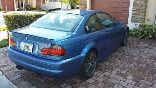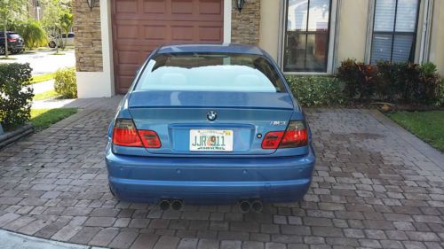 2002 M3 IN A VERY UNIQUE STORILBLAU METALLIC ORDER FROM FACTORY. PAMPERED LOW MILES. 19"CSL WHEELS, K&N AIR INTAKE AND ACTIVE AUTOWERK EXHAUST. THIS IS THE ONE YOU SHOULD HAVE IF YOU LIKE TO GET SOME ATTENTION SPECIALLY FROM OTHER BMW ENTHUSIAST. TITLE ON HAND. PRICE TO SELL. LOCATED IN DORAL/MIAMI AREA. CALL JOHN @ 305 303 0037