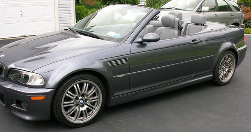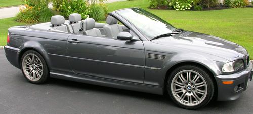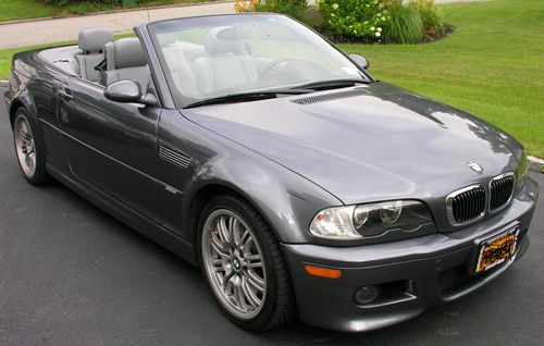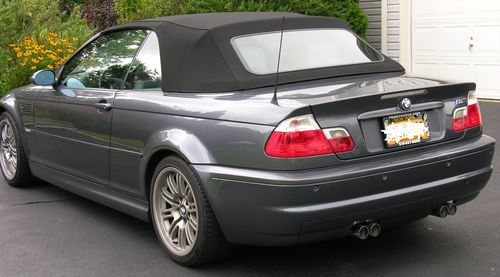 I am selling this car for a friend who bought it for his wife - she did not like the firm ride and quick shifts of this performance car so now it is up for sale. This is a very low miles pristine 2002 BMW M3. The car looks and runs great and has always been well maintained. The paint is in excellent condition and shines like new. There are some tiny stone chips on the front fascia that can only be seen from a few feet away (see photo close-up). The wheels are in great condition and the tires have about 70% of their tread. The top is like new and goes up and down smoothly. The interior is also nearly perfect - the only blemish is a small imperfection in the center of the steering wheel that can be seen in the pictures. If you would like to arrange for a local inspection, please email me your contact info - I will have the owner contact you directly.