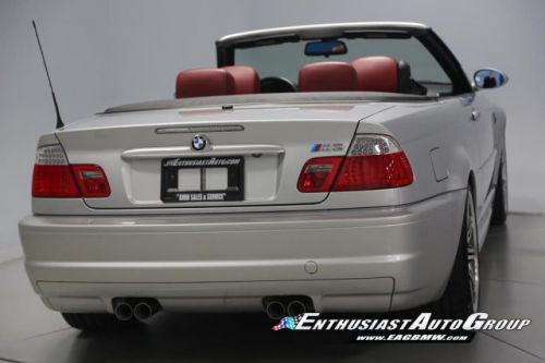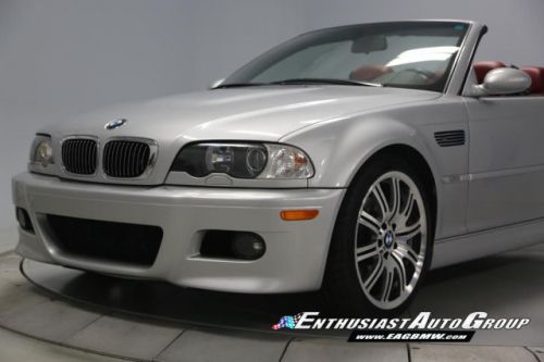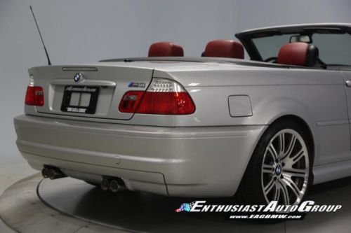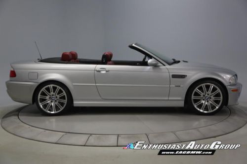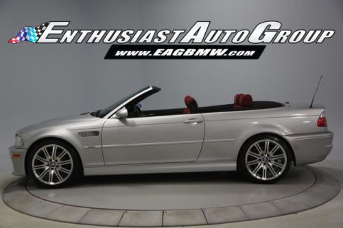 *New Arrival* Titanium Silver over Imola Red Leather, Stunning, Low-Mileage M3 Convertible! Nicely Optioned from BMW Including Polished 19" Alloy Wheels, Premium Package with Nappa Leather Upholstery, Power Seats with Lumbar Support + Driver Memory, Auto Dimming Rear View Mirror, Rain Sensing Wipers, Full On-Board Computer, Harmon Kardon Audio System, Cold Weather Package with Heated Front Seats, Retractable Headlight Washers + Ski Bag, Universal Garage Door Opener, Titan Shadow Interior Trim, Power Convertible Top, and Bi-Xenon Headlights. This vehicle is in stock form with no modifications, changes or additions. The condition of this M3 Convertible is excellent inside + out! The exterior paint shows very well without significant imperfections or blemishes! The interior is also very nice with supple leather, clean carpets and no visible wear areas. The canvas soft top is in great shape with no rips, de-stitching or wear marks. Garage Kept - Never seen inclement weather - No Winters, therefore, the body + undercarriage are especially clean! Enthusiast Auto has completed a Comprehensive Pre-Purchase Inspection and Work Order verifying this M3's mechanical integrity. Service Highlights Include an Inspection 2 Service with new fluids, filters, spark plugs + valve adjustment, engine drive belts, constant pressure valve, reconditioned 19" wheels, new Michelin Pilot Super Sport tires, upgraded urethane rear trailing arm bushings and performed a 4-wheel alignment. Responsible adult-owned M3 that received routine service + inspections. Complete Car with all Keys, Books + Manuals. Clean Vehicle History Report with No Accidents + No Issues. Adult Owned, Non-Smoker. Please Call or email to obtain a Pre-Purchase Inspection Report, Build Sheet, Condition Related Details, Vehicle History and 50+ Detailed Photos; 513.554.1BMW (1269) www.EAGBMW.com Enthusiast Auto Group is a highly specialized automotive facility focused on late model BMWs. In addition to BMW sales, we offer precision automotive service and performance upgrades. Our pre-owned inventory is meticulously selected with the highest quality standards then thoroughly inspected and serviced by our master BMW technicians.