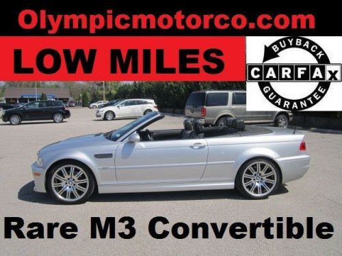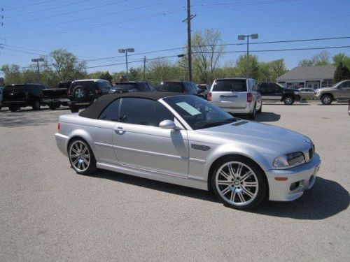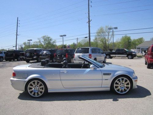 *** Carfax Certified *** Been looking for just the right Fun in the Sun high performance sport car??? Well..... your search ends here with this impressive low mileage 2005 BMW M3 Convertible. Finished in a pristine Titanium Silver Metallic with immaculate Black heated leather interior and Black power convertible top. The overall condition of this vehicle is excellent. Equipped with the incredible 3.2L inline 6 cylinder engine and BMWs Sequential Manual Gearbox that incorporates the clutch within the gas pedal and allows for some of the quickest shifts achievable from an automatic transmission. Addition options include Harmon Kardon sound system...Xenon headlights...19 inch BMW sport wheels...Aluminum trim interior...Power everything...Has Warranty...Dealer serviced with all the books...Never smoked in. Carfax values this BMW worth $1060 ABOVE retail value due to its extensive service history!! A must see for any sport car enthuisist.All trades Welcome...Financing for Everyone!! Olympic Motor Co. is a Accredited Business with the BBB and comes with 3rd generation 50 years of family experience of St. Louis automotive market. We work hard to provide excellent customer service. Olympic Motor Co. has the most competitive financing in town, from good credit to not-so-good credit, we can help everyone! *Limited warranty applies to drive train only, 30 days or 1000 miles which ever comes first, $100 deductible applies, see (call) sales rep. for details....* A $199 administrative fee to be added to the final sale price at delivery. **Subject to credit/lender approval. All information is deemed accurate but subject to typographical errors. Verify all information with Olympic Motor Co. ***Rates as low as 1.79% Try $0 downpayment. Financing for Everyone!! 0% Interest on Service Contracts. We CAN make it happen!!! ** Olympic Motor Co. is a new Pre-owned dealership that comes with 3rd generation 50 years of family experience of St. Louis automotive market. We work hard to provide excellent customer service. Almost every vehicle comes with a no-charge, Limited 100% 30-day warranty