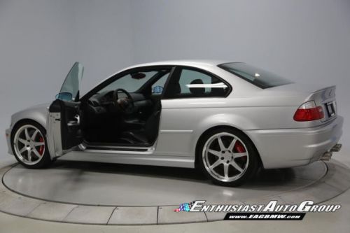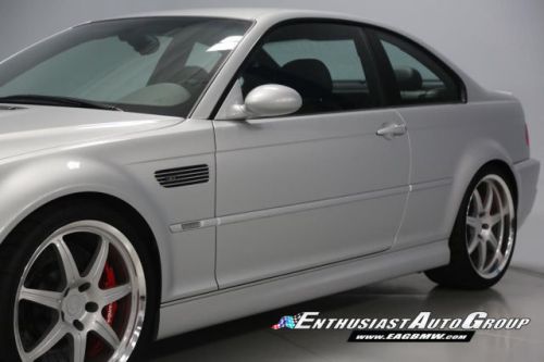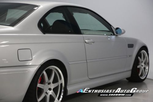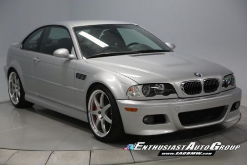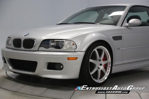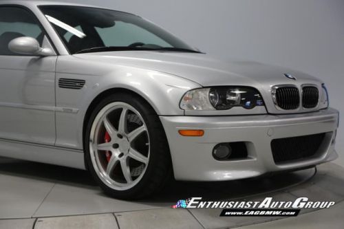 Titanium Silver over Anthracite Cloth, Uber-Rare, DINAN S3-R, Sunroof Delete, Competition M3! ONLY 10,260 Miles! Only the Essential Options: Competition Package and Xenon Headlights! Very Lightweight + Rigid! No Expense Spared! Dinan Upgrades: Supercharger System (462 horsepower + 328 lb./ft. torque) with Vortech Supercharger + Intercooler, High Flow Cold Air Intake, Larger Fuel Injectors, Aluminum Radiator, Engine Management System Calibration, High Flow Throttle Bodies + Dinan Wheels, 4.10 Limited Slip Rear Differential, Sachs Clutch Kit, Rasp Eliminator, SuperSprint X-Pipe to Kreissieg F1 Valvetronic Muffler with Cut-Out. TC Kline Racing Double Adjustable Coilovers w/ Camber Plates, Dinan Front Sway Bar + Strut Tower Brace. Brembo 380mm + 345mm Brake Kits. This car is a 1-family owned vehicle since new! This performance build was performed by Fall-Line Motorsports - All Receipts. Over $50,000 Invested Stunning Condition! The exterior paint is all original and shows very well without significant imperfections or blemishes! The interior is also very nice with supple leather, clean carpets and no visible wear areas. Never seen inclement weather; no snow or salt, therefore, the body and undercarriage is free of any corrosion or rust. This car will not disappoint the pickiest of car enthusiasts! Enthusiast Auto has completed a Comprehensive Pre-Purchase Inspection and Work Order verifying this M3's mechanical integrity. Service Highlights Include an Early Inspection 2 Service with new fluids, filters, spark plugs + valve adjustment and coolant flush. Clean Vehicle History Report with No Accidents + No Paintwork + No Issues. Adult Owned, Non-Smoker. Serious Inquiries from US Residents Only - Exportation of EAG cars breaks our strict buy-back policy. Please Call or email to obtain a Pre-Purchase Inspection Report, Build Sheet, Condition Related Details, Vehicle History and 50+ Detailed Photos; 513.554.1BMW (1269) www.EAGBMW.com Enthusiast Auto Group is a highly specialized automotive facility focused on late model BMWs. In addition to BMW sales, we offer precision automotive service and performance upgrades. Our pre-owned inventory is meticulously selected with the highest quality standards then thoroughly inspected and serviced by our master BMW technicians.
