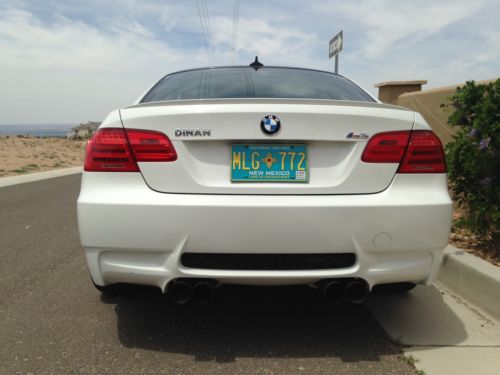 DINAN badged 2011 BMW M3 coupe, white, 6-speed manual, competition package, cloth seats, carbon fiber roof, navigation, upgraded sound, i-pod integration. Car is equipped with DINAN carbon fiber intake, exhaust, engine tuning and carbon fiber strut tower brace, equalling 10 points worthy of the DINAN badge. All parts are covered under BMW factory warranty good thru 4 years and 50,000 miles. Car currently has 29,677 miles. Runs great, sounds great, looks great, no problems with motor or anything ever. One of the best looking cars driving on the road at any given time. Gorgeous. Hate to sell it but I could use the extra money. Please don't hesitate to contact me. Cell # 505-239-3409. Thank you.