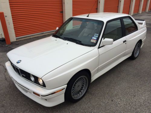 This is a very rare original Alpine white E30 M3 that has not been modified or tampered with. Original engine, interior etc.. Female owner drove for the majority of its life and it recently traded from a brief stint with a private collector to me. I have made a couple minor repairs and added the Evo rear wing with carbon fiber splitter however the original wing is included with the sale. The original wing has the familiar paint cracks that will need to be repaired but structurally the tail is perfect. The paint condition is excellent. A few tiny chips in the front and on one side mirror. Not noticable unless up close. No door dings. Interior is an 9 out of 10. It's all original. The driver seat has a couple small tears on one edge and the headliner portion of the sunroof needs to be re glued but is not torn. Brand new dash. Aftermarket radio. Engine is prestine with the exception of the paint flaking off the MPower logo. No known mechanical issues. Car drives perfect. Alignment is perfect. Suspension feels perfect. The car drives and feels exactly as it was designed to. Awesome fun but I've been bit by the Porsche bug... Car is located in Houston. Happy to show it.