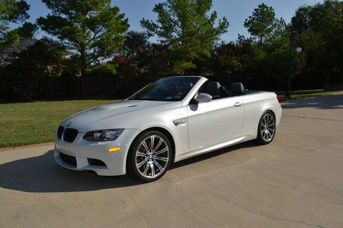 2013 BMW M3 Convertible, Mineral White Metallic with Silver Novillo Leather. DCT M Transmission, Premium Package with Navigation with real time traffic and voice command. Cold weather Package with Heated Seats. Dynamic Damper Control. 19' BMW M Alloy Wheels, Satellite Radio, Enhanced Premium sound. BMW Apps. 6 year 100K mi Maintenance Coverage Upgrade. 5yr Windshield coverage. 5yr Tire and wheel coverage. Total MSRP $87,990