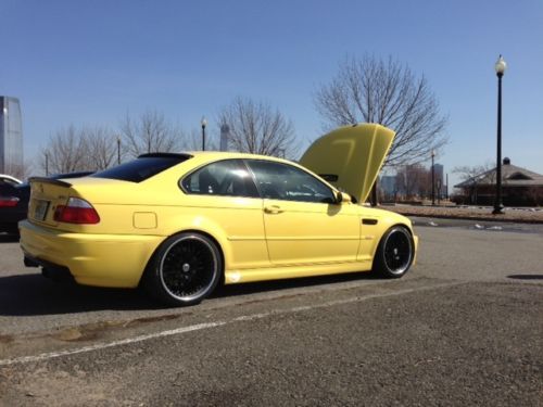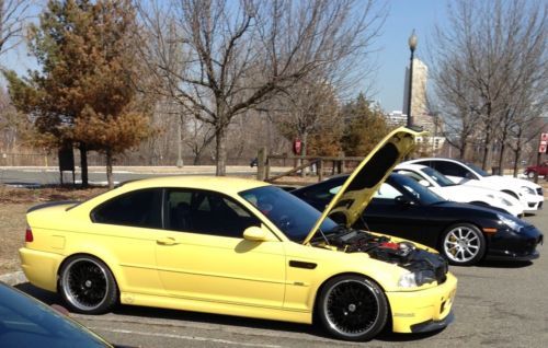 Personal financial reasons have forced me to sell my Supercharged E46 M3. I am the second owner of this car: having owned it for over 6 years now. I purchased the car with 48,500 miles and it was bone stock. All modifications have taken place the past 12 months. Facts about the car: Dakar yellow e46 - factory paint . 1/50 ever made in that color/e46 Car was professionally built by Bimmer Clinic in Avenel NJ Motor was professionally built by Master BMW tech Kevin Lynn. bi-xenons power windows, locks etc NO sunroof- weight saver (car currently weighs 3200lbs) back seat removed /front seats replaced with SABELT titans ( perfect for anyone over 6'4 250lbs -or under ) They sit on adjustable sliders from recaro. 5 point harness also installed on both seats. Roll cage installed - cage was built by Kirk racing steering wheel replaced with Sparco Boost gauge / Air / Fuel gauge sits on pods behind the wheel carbon fiber front splitter / carbon fiber rear splitter Motor: 3.2liter built with forged internals to stock specs. 540 miles on new motor ( Bottom end is 100% stock) RMS stage 2 supercharger making 9.5lbs of boost- 398hp on OE beta tune and 498hp on Alpha N tune (rwhp) HPF fuel system Optima Battery AA headers Milltek Mid Pipe Milltek Exhaust Bilstein Pss1 adjustable coilovers ( 3000miles on them) Upgraded to BMW competition brakes Iforged 19 inch rims with BRAND new Pirrelli tires Car is in near perfect condition - interior is almost perfect, exterior has some minor rock chips. Small ding on drivers side fender . Took out a police report toclaim damages from another motorist so something might show up on carfacts. Please note - THIS CAR WAS NEVER IN ANY ACCIDENT / FENDER BENDER / ETC the ding has not been repaired, but its hardly noticable. Buyers are welcome to come see car and do full inspection! No expense has ben sparred |