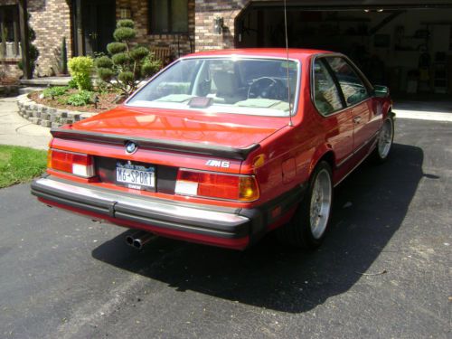 Fantastic Cinnibar Red BMW M6 nearly fully restored to its original beauty! Gorgeous white interior. I've spent the last 5 yrs fixing nearly everything on this car and it now runs great. The previous owner rebuilt most of it as well. Overall, about 35K invested in restoration over the past 2 owners (I am the 5th). Originally this land shark was priced at $67,000! 142K miles - Odometer was replaced at 141K (see photo). Nearly all of the little gadgetry works! This car is absolutely amazing and was truly over-engineered in '87. However, I've enjoyed it long enough and need to pass it on to a new loving home. Previously, was a Texas car then a California car (where I purchased it from). Engine is fantastic and clean. Interior has normal wear but otherwise very good condition (Upholstry on dash needs some love still but rear seats were both replaced). Need to see it to believe how nice this car really is - Come take a test drive. All major systems have been overhauled or upgraded/replaced: clutch, brakes, electrical, suspension. A/C doesn't hold charge for long. Pictured wheels are M3 18 inch but I do have the original set of wheels as well. Everything (except the removable Panasonic radio and Hela xenon lights ) is OEM. 3.5 L I6 cylinder Very rare and very few in the area, especially in this amazing condition - Trust me, I've looked. It was a dream of mine to own one, so now that I have it nearly fully restored, it's time for someone else to play with. Own a limited edition classic coupe (only 1800 imported!) from the legendary M division of BMW. |