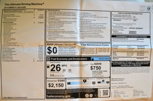 15 bmw sav x1 28si 4dr suv x1 28i rwd new suv automatic gasoline 2.0l 4 cyl alpi(US $34,497.00)