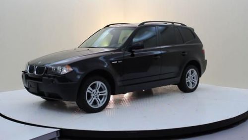 3.0i trim, Jet Black exterior and Grey interior. JUST REPRICED FROM $13,995, FUEL EFFICIENT 25 MPG Hwy/17 MPG City!, $1,200 below NADA Retail! Extra Clean. All Wheel Drive, Aluminum Wheels, Non-Smoker vehicle. CLICK NOW!======KEY FEATURES INCLUDE: . All Wheel Drive, Aluminum Wheels, Keyless Entry, Stability Control, ABS. 3.0i with Jet Black exterior and Grey interior features a Straight 6 Cylinder Engine with 225 HP at 5900 RPM*. ======EXPERTS REPORT: The X3 is equipped with BMW's xDrive all-wheel-drive system, Dynamic Stability Control and Hill Descent Control, all designed to give it tenacious grip and secure control in less than favorable conditions. -newCarTestDrive.com. Great Gas Mileage: 25 MPG Hwy. ======EXCELLENT VALUE: Was $13, 995. This X3 3.0i is priced $1, 200 below NADA Retail. ======BUY FROM AN AWARD WINNING DEALER: After more than 50 years in business, The Hubler Auto Group, through the power of ten central Indiana locations, has literally sold hundreds of thousands of vehicles and is one of the oldest and most prolific auto dealers in the State employing 550 people. The Hubler Auto Group can claim the title for selling more G.M. vehicles in the State of Indiana than any other dealer or dealer group, and has earned the right to brag of having the largest and most loyal customer Pricing analysis performed on 6/16/2014. Horsepower calculations based on trim engine configuration. Fuel economy calculations based on original manufacturer data for trim engine configuration. Please confirm the accuracy of the included equipment by calling us prior to purchase.