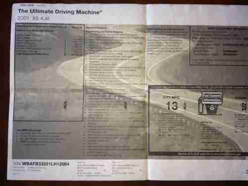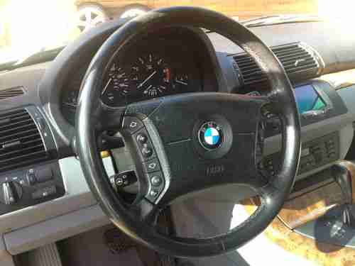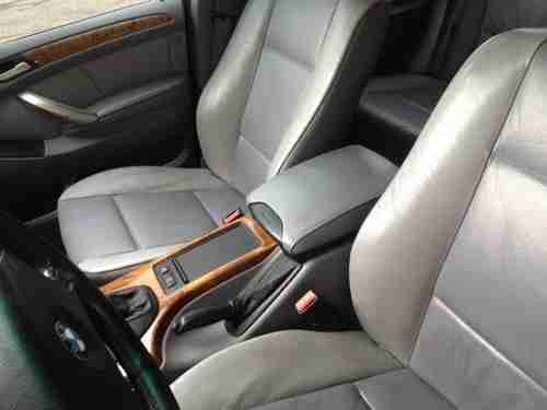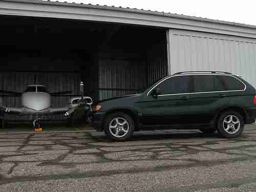 This is a 2001 Oxford Green Metallic BMW X5 with gray leather. Options include: Power glass moonroof (works fine), Xenon Headlights, Navigation System with disks, Premium Sound System W/DSP (multi disk player in the back). Cassette player in the dash allows adapter for playing ipod, etc... Beautiful paint, always garaged (or hangered). Leather, carpet and all interior panels are in great shape. Beautiful wood. Dash is like new. Maybe a couple of very small nicks on the front. Comes with a set of rubber all season BMW mats and the factory carpet mats. Full size spare, tool kit, jack.