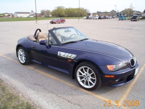 LOOK NO FURTHER >>>>>>>>> YOU HAVE FOUND YOUR MID LIFE CRISIS DREAM CAR !!!! {{{{ PLEASE READ FURTHER DOWN TO SEE MY SPECIAL OFFER IN REGARDS TO MY B.I.N. OPTION }}} I hate to sell my "SPY CAR", but I have lost my winter storage and don't want to wait till fall to sell. I lose out on a driving season and you gain one! I purchased this Classic BMW beauty on E-Bay in the fall of 2008. At the time the vehicle only had 5,000 miles and was and still is in like new condition. I flew to Boston and drove her back home to Canada. The "beamer" is an American built vehicle and the odometer (distance travelled) reads in mileage and not kilometres. Like most vehicles on the road, the speedometer shows both, mileage and kilometres For anyone in Canada that might be concerned if the Z-3 is Canadian Certified, then please don't be! I installed the day time running light module and it had no other issues for passing the Canadian safety. I have the R.I.V. certificate sticker placed on the interior of the trunk lid. { See Photo's } Plus I would not been able to have driven it for the last 6 years if it wasn't certified! Amazingly, she only has 16,900 miles, or 27,200 klm. That averages out to only 1,000 miles a year. I am a VERY FUSSY vehicle owner and truly babied this Z-3 from day one. She had been my dream car when they came out in 1996! Oil and filter change every season, no exceptions. Coolant flush and fill was performed 3 yrs ago. She really didn't need much else! The paint was waxed at least twice a season. Our driving season is short, only from mid May till mid October. I always waited until mid-May to put her on the road as I wanted all the winter road grime to be cleaned away. The paint sparkles as she was still in the show room. At 50 plus years of age, I can assure you that I am NO speed demon. I never did anything stupid with this car, in regards to speed or misuse! This car is a real head turner and conversation piece. Don't expect to get gas or go shopping without someone "drooling" and wanting to talk about this beauty. My license plate reads "SPY CAR", because James Bond used a BMW Z-3 in the 1996 movie Golden Eye. The first time that a German car was used for James Bond and the first movie ever to show off the all new Z-3 . The beamer is equipped with a computer performance chip, a performance exhaust and a K&N air filter system. These three items help bring the horse power up from the stock 190 to apprx. 210. The performance exhaust is not too loud and won't break any windows ha-ha, but does give the car a very nice "throaty" sound! I still have the original exhaust and you are welcome to take that home with you as well. I also installed a three (3) spoke European Style steering wheel. Looks so much nicer than the stock wheel. I have also installed roll bars that finishes off that unique roadster convertible look. The front part of the hood and front bumper have a clear vinyl protective cover, that the original owner had installed. Even though the Michelin Pilot tires are 17 years old, you would think they were new. No cracks on the side walls with plenty of tread depth. The "Zed" was always just a sunny day summer drive and seldom driven in the rain. Always garaged by mid October. She comes with the original set of keys and key-less entry. She also has an Alarm system. I have also purchased the cream colour, tailored fit car cover along with the hood nose bra, front bumper bra and R.V. Mirror covers. I could go on ALL day bragging about my "Spy Car", but I will finish with the following; You will simply not be disappointed with this Z-3. If I love it then I am almost certain that you will as well. As I said earlier, I am extremely fussy about the vehicles I drive and how I take care of them. Pride in ownership shows, inside and out!!! I also wanted to mention that this Z-3 is more than ready to take on any road trip you might have in mind. She is presently still in storage and will stay that way until she finds a new home. I have NO plans to drive her this year so the mileage will not change. I will also change the engine oil and filter before she leaves and do my best to make sure she is road ready. If you use my BIN option, I will give pay your first $500.00 usd for either your shipping or travel cost. I will also include the cream colour car cover { worth $300.00 plus } and both hood and front bumper bra's along with the R.V. mirror covers. { worth another $200.00 plus } . All three items would easily cost you over $500.00 usd. Save $1,000.00 just for using my BIN option!!! If you are the lucky winner, I will also need a $1,000.00 deposit on Pay-Pal within 48 hrs. The remain cost of the vehicle can be paid with either a Bank Draft or Money Order. You can also come with cash if you are picking her up and driving her home. Awesome time of the year for a "top down" trip on the highway! If you are pre-paying in advance, then I will need sufficient time to clear your choice of payment, before the car can leave. NO PAY PAL please for final payment. I pride myself in being an honest, friendly seller with very good communication skills. I do my best to answer all questions in a timely manner and remember, there are NO stupid questions. The more you ask the more you will know about this Classic Z-3 and the more you will realize that you should purchase her!! If you are shipping this vehicle, I will be happy to do what I can, to help you in this process. Please be aware that you are fully responsible for obtaining any documentation that is required for this car to cross the border, registering and insuring this vehicle once you get it home. Again, I will be happy to work with you and help in any way I can. Last but not least. Please don't be concerned about the date stamp on the pictures. Yes the pictures were taken in 2009, but in NO WAY is the Z-3 any different today then it was then. Only the mileage has changed. I only drove it apprx. 2,000 miles a year. My drive back from Boston was just