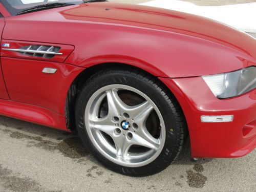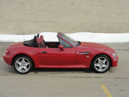 HERE WE HAVE A 2000 BMW M-ROADSTER IN BEAUTIFUL CONDITION COMES LOADED WITH FEATURES, 3.2 LITER 6 CYLINDER MOTOR, POWER WINDOWS, POWER LOCKS, POWER MIRRORS, HEATED LEATHER SEATS, AIR-CONDITIONING, ALUMINUM RIMS,, ABS, TRACTION CONTROL, FRONT AND SIDE AIRBAGS, POWER SEATS, CRUISE CONTROL, FACTORY CD-PLAYER, HARMON/KARDON SYSTEM. THE INTERIOR IS IN GREAT CONDITION,VERY CLEAN, has some light wear on the left side of the drivers seat(check picture). THE BODY IS IN EXCELLENT SHAPE, VERY SHARP, just has a couple chips that were touched up and are not noticeable and the bottom of the front bumper has some scratches underneath, this is also not noticeable. THE MOTOR AND TRANS RUN LIKE NEW, AND ALL THE OPTIONS WORK GREAT. THE TOP IS ORIGINAL AND IN GREAT SHAPE, just has some minor wear from age. THIS IS A GORGEOUS M-ROADSTER VERY RARE WITH ONLY 29,385 ORIGINAL MILES. BEAUTIFUL COLOR COMBO IMOLA RED WITH BLACK/RED LEATHER INTERIOR..THIS BMW IS A ONE-OWNER CAR FROM OKLAHOMA. IT HAS BEEN VERY WELL TAKEN CARE OF, BRAND NEW FRONT TIRES JUST INSTALLED.THE KBB VALUE WITH THIS MILEAGE IS OVER $22,000 RETAIL THIS IS A BEAUTIFUL ROADSTER. JUST LOOK AT ALL THE PICTURES AND YOU WILL SEE HOW NICE IT REALLY IS. PLEASE NOTE: This bmw had one accident. It was hit in the passenger side rear. Since it is an older vehicle the insurance company would rather write it off as a loss than repair it. I purchased it directly from them. It has now been professionally repaired and looks excellent. The car was fully inspected and has a REBUILT TITLE which is the same as a regular title except it says rebuilt on it. I deal with a lot of rebuilt vehicles (especially bmw z'3) and every one of them comes out looking great, please check my feedback and you can see that my clients are very satisfied. ***********We welcome any pre-buy inspections before purchase and can help facilitate door to door shipping to anywhere in the country at an affordable price. We are also pleased to offer free airport pick-up from either Ohare or Midway airport. The car is available for viewing anytime.********* BID WITH CONFIDENCE-PLEASE CHECK MY FEEDBACK HISTORY, YOU CAN EMAIL OR CALL 773-502-3611 WITH ANY QUESTIONS. PLEASE do not bid if you dont intend to go thru with the purchase. Paypal can be used for deposit only, a $200 deposit is required within 24hrs. We are a licensed Illinois dealer, residents are subject to sales tax and registration. All other states are exempt from paying tax here except the following 8 states which by law pay sales tax at time of pick up, MI 6%, IN 6.25%,SC 5%,VT 6%,MA 6.25%, AZ 5.6%, CA 6.25%FL 6%. Once the tax is paid you will no longer have to pay it back home. There is a small $99 documentation fee, which also includes a full tank of gas, a temporary tag and free airport pick up for out of state buyers. THANK YOU