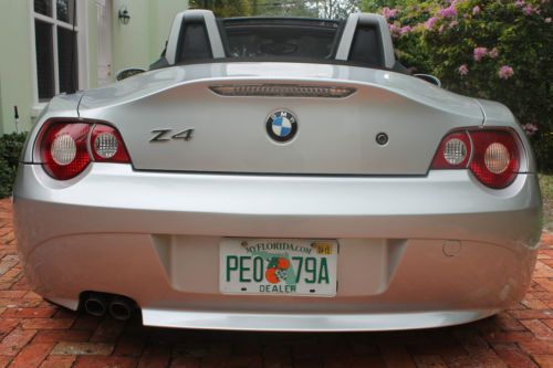 Welcome to a phenomenal opportunity. You are viewing an incredible, one-owner, meticulously cared-for and exclusively Florida-kept and driven 2005 BMW Z4 Roadster. This stylish convertible is sexy, sleek, extra-clean and has only 52,000 original, one-owner miles. This Roadster is as clean as they come. Period. Certainly the best color combination. Brilliant Silver over Ebony Tex-leather, and matching Black canvas power top. All in exceptional condition. This vehicle has been garage-kept and it shows. This one get looks and stares everywhere--top up, or down, and is an absolute pleasure to drive. Completely power, self-enclosed convertible top, and full power options. The rich black canvas is in outstanding condition and this vehicle was owned by a non-smoker. Only one mature, adult owner, this is the opportunity that you have been dreaming of. Loaded with everything and it runs and drives superbly. Very inspired 184-hp 2.5 liter 6-cylinder engine delivers outstanding performance, and matched with its close ratio, electronically-controlled automatic transmission (w/Overdrive), this Roadster is a pleasure to drive. Drink your coffee, sip your cappuccino, enjoy your Green tea....all without the hassles of bothering with a manual transmission. Not to mention the pain-in-the-neck shifting in rush hour traffic. You know the feeling...Combined with traction control, you'll enjoy this zippy Z4 Roadster in any driving situation--wet or dry (or Snow!) Speaking of which--this classy little roadster has been a Florida vehicle its entire life. No salt, no snow, no harsh weather, no harsh roads...no hills. Believe me, owning a Florida vehicle makes a BIG difference! Aside from the obvious weather advantages--your undercarriage and suspension will all thank you for this! This is a fair weather automobile that was only driven on occasion, buy one owner, who purchased it new, and NOT used as a daily commuter, and pampered all along the way. Everything works perfectly and properly, just as you would expect from a superbly maintained 52,000 mile, one-owner Florida automobile. No excuses--no disappointments--just one of the cleanest, lowest mileage examples out there. We have this gorgeous Roadster offered on auction for 7 days with No Reserve...that's right, one lucky and incredibly savvy bidder will be getting the car of their dreams!. Again, only one, original, careful owner, and this BMW Z4 has never seen snow. AutoCheck guarantees absolutely no title problems and documented mileage...all she needs is a new home. No disappointments here. While other 2005 BMW Z4 Roadsters offered for sale in the US have an AutoCheck score ranging between 75 and 84, ours scored an ultra-impressive 86! How's that for peace of mind! Extra-clean interior, perfect interior and power top and a pleasure to drive. Imagine all the fun you will have with this sexy convertible, while still driving one of the safest vehicles on the road. The exterior finish is outstanding, and with 17-inch factory aluminum/alloy wheels, this Z4 is as much fun to drive as it is to look at! I have both original laser cut factory keys (with remotes) as well as the original floor mats (in excellent condition). We can assist with transport within the Continental US. We list our vehicles to sell, and many sell with just a simple phone call to our sales associate.The latest June 2014 NADA Used Car Guide shows the retail value of this Roadster to be upwards of $15,400 and certainly much more according to your friendly neighborhood BMW dealership, or local high-image Import Auto Boutique. Don't miss out on this one. Without a doubt one of the cleanest in the country. Please feel free to call or e-mail us and enjoy a wonderful buying experience. 561.283.9511. Ask for Steve. I'll be happy to tell you all about this special car and give you a full walk-around of the vehicle. It is available to be seen in our showroom/warehouse in Jacksonville. If you fly into Jacksonville, we will be happy to pick you up from the airport. Don't miss out on this one. I promise, another one won't come along with this type of mileage or Pedigree. So, when this one is gone, it may not be that easy to find another one. We charge a $299 dealer fee to each purchase. Good Luck to everyone bidding. Bid with confidence, and Bid to win! |