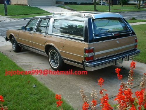 See many pics at: http://www.picturetrail.com/sfx/album/view/24542089 1989 Buick Electra Estate Station Wagon. This was a one-owner car until I bought it in 2006. Paint is glossy and smooth. Woodgrain is in exceptional condition with only a few minor nicks. All chrome and bright trim is in excellent shiny condition - no cloudiness, no pitting. Vinyl bumper fillers are all in great condition - and original - as this car was always kept garaged. Interior was never smoked in. Headliner is still in great shape. Runs and drives beautifully. Idles smooth. No leaks underneath. 5.0 liter 307 V8 engine - uses no oil. Automatic transmission shifts properly and works perfectly. No leaks. Needs nothing. Everything works - including the air conditioning, and power antenna (which I currently have unplugged to keep it from wearing out like almost all did). Loaded with almost everything available in 1989 - including the more uncommon options - like twilight sentinel, illuminated outside key locks, fiber optic light monitors on the top front fenders, and electronic automatic climate control. I added the Buick aluminum wheels with the small centers and exposed chrome lug nuts. Originally came with the wire spoke wheel covers - which I still have if you prefer that look. Tires are a matching set of 4 in excellent condition. Deep tread. Fly in, or Amtrak, or Greyhound - and drive home. I'm in Milwaukee, WI 53227. |