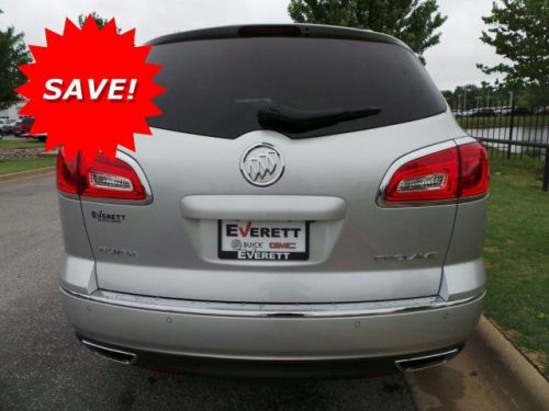 BACK-UP CAMERA, LEATHER, BLIND SPOT MONITOR, BLUETOOTH, MP3 Player, CHILD LOCKS, 3RD ROW SEAT, KEYLESS ENTRY, HID HEADLIGHTS, SAT RADIO, POWER LIFTGATE, One look at the 2014 Buick Enclave, and you will realize it is a sight to behold. Its prominently featured black chrome waterfall grille and LED-infused head and tail lamps showcase its modern design. Together they add up to an impressive look for Buick's flagship crossover. Rich interior colors, ambient blue lighting, tri-zone climate controls, three rows of first-class seating provide room for 8, and QuietTuning technology creates a more comfortable environment that makes your driving experience better than ever. Working effortlessly with the updated 6-speed transmission, Enclave's 288-hp 3.6L V6 engine gives a powerful performance through direct injection and Variable Valve Timing. Dual Flow Dampers in the suspension system minimize impact and help reduce noise and vibrations from every road surface. Together, these technologies deliver an unparalleled drive that's controlled, quiet and efficient. The available Intelligent AWD system in this luxury crossover is always one step ahead. Constantly monitoring the traction of all four wheels, it kicks in automatically in the toughest road conditions. When the road calls, answer hands-free. From IntelliLink voice-controlled connectivity, to Bluetooth to the built-in Color Touch Radio, the finest luxury crossover wouldn't be complete without the latest innovations. Also standard is ultrasonic rear park assist which will alert you when you're getting too close to an object or structure. The industry's first front center air bag is at the forefront of Enclave's safety innovations. Together with its already robust list of safety advancements, like available Side Blind Zone Alert with Cross Traffic Alert and standard StabiliTrak with Traction Control, the new Enclave keeps you and your passengers safe, comfortable, and ready for the road.Selling price includes $1500 Customer Cash, $750 Bonus Cash and $1000 Buick Loyalty Cash OR $1,000 Buick Conquest Cash. 0% for 60 months financing available in lieu of Customer Cash. Not all customers will qualify for all incentives. See dealer for details. At Everett our most important objective is customer experience. We want you to be COMPLETELY satisfied. That's why we have great incentives like $9.95 oil and filter changes and certified used car programs. We feel like we can give you the best experience because we are family owned and operated. This is where our family is and it's where you can bring your family too. Ask for Josh today!