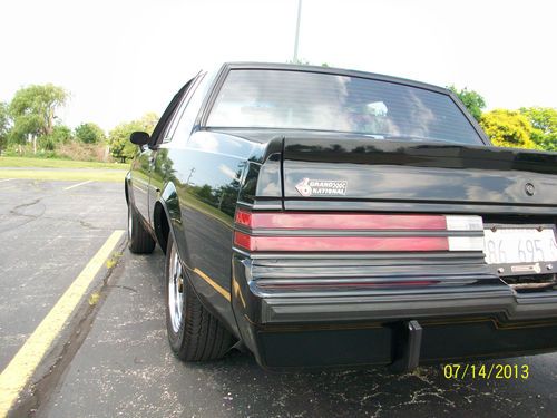 1987 Buick Grand National with 69,800 miles. This car is completely stock, and has not been altered, modified, or raced. It wears the original paint that came from the factory, and still has a great finish (considering the quality of an 80's GM paint job). All factory options available, except a power seat. Original GN wheels (one extra included), mounted on Goodyear Eagle GT's, which are stock replacements with less than 10K on them. Recently replaced: Brake Accumulator, front bumper fillers, power steering pump, plugs and wires. Former Buick Club of America Senior Gold winner (2001). I bought this car from a fellow Buick Club member, who owned it for 18 years, and have put less than 1000 miles on it, since 2011. I am the fourth owner. Clear Scan Master codes, and all accessories work, with the exception of the power antenna; motor runs, but the cable snapped. Digital dash option.