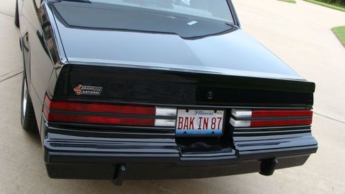 I thought that I would never ever sell this car, but things change. I am selling my dream 1987 Buick Grand National that is in mint condition with only 15,215 miles on it. It is all stock except for: newer high dollar show paint, newer battery, brand new headliner, brand new floor mats, brand new valve cover gaskets, chrome turbo cover, brand new GNX/GTA rims, tires, lug nut covers, and center caps. The only reason for the base/clear paint was because the original paint was checking as all Grand Nationals did. This paint job is better than the factory paint ever was. The paint and body are a strong 9.7 out of 10, and that is being picky. The interior is a a 9.5 out of 10 only because it is not a brand new car. Never smoked in. Interior still smells new. Body has NO rust at all and never has. Everything works except for the A/C. It just needs a recharge. I have the original rims with all of the original caps and lugs. The rims even have the original tires on them still. The rims would need to be re-chromed to be in show condition. The previous owner stored them in his musty basement and they have some surface rust. The only other flaw in the whole car is the driver side window weather strip that runs diagonal and vertical has a tear in it.