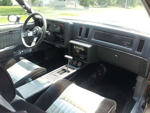 1987 Buick Grand National Hardtop. Engine is 95% stock with only 53K actual miles on it. I believe the injectors were updated as well as a ram air kit was bolted on. The engine runs strong, while the trans shifts firmly. G80 Posi option. I have recently tuned the vehicle, replaced the exhaust and headliner, and addressed other items of need. I would rate the engine a 9 out of 10, the interior a 9.5 out of 10, and the body as a 7.5 out of 10. I am the 2nd titled owner of this classic car. The engine needs a rear main seal, the front bumper bar is damaged on drivers side, the original paint and body show 25 plus years of wear, while the frame/undercarriage shows corrosion and the bumper fillers are weathered/cracking. The Engine and interior are in great condition!!! This car needs body work and a paint job and its ready to show! Low miles and excellent interior make this a keeper! I disclose the flaws so there are no disappointments. This car is a daily driver and looks good from 10 feet away! I encourage an inspection to show I am not overselling this car! Car sat in a 1st owners garage for many years.