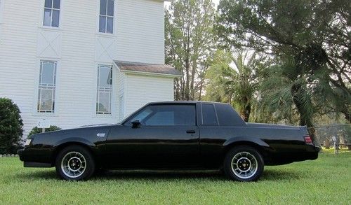 This is a 1987 Buick Regal "Grand National" 3.8L Turbocharged Intercooled tribute/clone. The car started its life as a clean, rust free loaded 87 Regal and has since been cloned into a Grand National. The car is driven daily, runs and drives perfect with only 120k miles. The car has an older paint with chips and flaws but still looks pretty good as you can see in the pictures but not a show car by any means. A/C blows ice cold, Sony CD player with iPod jack and remote. This is as close to a GN that you will get minus the turbocharger. The naturally aspirated 3.8L V6 gets great gas mileage and the car gets a thumbs up gesture multiple time a day! You can not pull into a gas station without several people coming over to check her out. Really nice interior showing only minor wear (thumbnail size tears in drivers seat). This car needs nothing but a new home. Drive the car as it is, install a turbocharger, or maybe even do a V8 swap. No trades offers please. The car has OEM Grand National hood, GN spoiler, GN air dams, GN wheels, GN emblems, GN coil springs, GN front and rear sway bars, etc. New tint, new floor mats, four new fiberglass bumper fillers installed. I have more into the parts on the car than I'm selling the entire car for. Also, I will include with the sale a matching center console with floor shifter. The car starts right up, runs like a champ and all the lights, wipers, turn signals, hi/low beams, parking lights, etc. work as they should although horn is not. Drive her anywhere. I just did a 12 hour trip this past week (630 miles) in the car and she ran absolutely perfect! This is a great car for a fraction of the cost of a real Grand National. Nobody will ever know the difference unless you pop the hood. Please note, the GN is being sold "as is" and "where is" to the highest bidder so if you are not sure about something then please ask. It is the bidders responsibility to inspect the vehicle personally before the auction ends, just send me a message and we can set up a time for you to view the car in person. Also, I do have the car for sale locally so in the event it is sold, I will end the auction. Thanks for your interest. Bid to win, clean and clear title in hand.