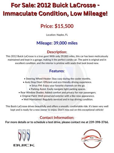 2012 buick lacrosse convenience package 4 cylinder good mpg automatic(US $9,991.00)