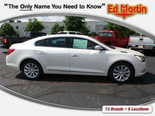 The Buick LaCrosse has been totally restyled for 2014. Exterior design tweaks alter the sedan's appearance while the interior gets improved seating and simpler, intuitive dashboard controls. Exterior styling changes are focpre-owned on the front and rear of the vehicle. The headlights and grille are bolder, and all LaCrosse models come with active grille shutters that close at high speeds to improve aerodynamics. The interior features ice-blue ambient lighting and warm wood tones to surround you in style. Like others in Buick's lineup, the 2014 LaCrosse comes with the IntelliLink infotainment system with tablet-like interface. Some high-tech safety features include Forward Collision Alert, which senses when you are getting too close to the vehicle in front of you, and Adaptive Cruise Control that automatically adjusts vehicle speed to help maintain your selected driving distance. The LaCrosse also features QuietTuning technology that blocks and absorbs outside noise for a quieter ride. Choose from the standard 2.4L engine with eAssist Technology, or the powerful 3.6L V6 engine with variable valve timing. Come see why the 2014 Buick LaCrosse is set apart with refined luxury, confident styling, and advanced performance.ENGINE 3.6L SIDI DOHC V6 VVT (304 hp [226.7 kW] @ 6800 rpm 264 lb-ft of torque [356.4 N-m] @ 5300 rpm) (Includes (REP) 18 Sterling Silver painted aluminum wheels. E85 FlexFuel capability is not available in CA CT DE MA MD ME NJ NY OR PA RI VT and WA.), SUNROOF POWER OVERSIZED, TRANSMISSION 6-SPEED AUTOMATIC ELECTRONICALLY CONTROLLED WITH OVERDRIVE includes Driver Shift Control, ULTRA LUXURY PACKAGE includes (H1X) Sangria Semi-Aniline perforated leather seating real wood on instrument panel door inserts and console and leather-wrapped center console door armrests Suede headliner pillars and vanity mirrors with stitching, WHITE DIAMOND TRICOAT, Auto-Dimming Rearview Mirror, Driver Adjustable Lumbar.Includes $1500 Buick Conquest and $500 Bonus Cash Incent Pricing includes destination, optional equipment and reflects manufacturer incentives. We pride ourselves in having an upfront, completely transparent purchase process. Nothing hidden and no surprises! Our goal, to create an automotive buying experience that will last a lifetime. Our hope, you will share your Ed Martin Experience with others. Sincerely, Ric McCoy General Manager