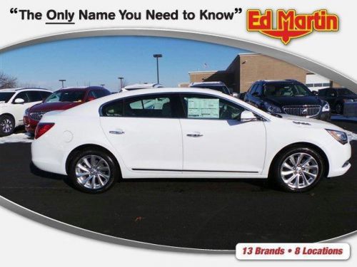 The Buick LaCrosse has been totally restyled for 2014. Exterior design tweaks alter the sedan's appearance while the interior gets improved seating and simpler, intuitive dashboard controls. Exterior styling changes are focpre-owned on the front and rear of the vehicle. The headlights and grille are bolder, and all LaCrosse models come with active grille shutters that close at high speeds to improve aerodynamics. The interior features ice-blue ambient lighting and warm wood tones to surround you in style. Like others in Buick's lineup, the 2014 LaCrosse comes with the IntelliLink infotainment system with tablet-like interface. Some high-tech safety features include Forward Collision Alert, which senses when you are getting too close to the vehicle in front of you, and Adaptive Cruise Control that automatically adjusts vehicle speed to help maintain your selected driving distance. The LaCrosse also features QuietTuning technology that blocks and absorbs outside noise for a quieter ride. Choose from the standard 2.4L engine with eAssist Technology, or the powerful 3.6L V6 engine with variable valve timing. Come see why the 2014 Buick LaCrosse is set apart with refined luxury, confident styling, and advanced performance.ENGINE ECOTEC 2.4L DOHC 4-CYLINDER DI (DIRECT INJECTION) 4-CYLINDER WITH EASSIST TECHNOLOGY includes (MHH) 6-speed automatic electronically controlled transmission (FXJ) 2.64 final drive ratio axle (KY2) 120 amp alternator (TM7) heavy-duty 438 cold-cranking amp battery (NWM) single-outlet hidden exhaust (J60) 4-wheel antilock disc brakes (RDL) 17 machine-faced Silver painted aluminum wheels with (RAF) P235/50R17 all-season blackwall tires (VRI) front lower active grille shutters and underbody aero panels (182 hp [135.7 kW] @ 6700 rpm 172 lb-ft of torque [232.2 N-m] @ 4900 rpm) (STD), SUNROOF POWER OVERSIZED, TRANSMISSION 6-SPEED AUTOMATIC ELECTRONICALLY CONTROLLED WITH OVERDRIVE includes Driver Shift Control (STD), WHEELS 18 (45.7 CM) STERLING SILVER Pricing includes destination, optional equipment and reflects manufacturer incentives. We pride ourselves in having an upfront, completely transparent purchase process. Nothing hidden and no surprises! Our goal, to create an automotive buying experience that will last a lifetime. Our hope, you will share your Ed Martin Experience with others. Sincerely, Ric McCoy General Manager