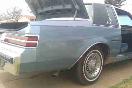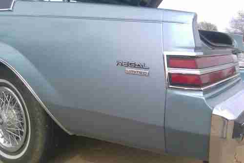Here I have a 1986 Buick Regal Limited 2 door in excellent condition. My dad bought it from a friend who's mother owned it and passed away. The exterior and interior are in beautiful condition, all inside is original to include radio and all paperwork is there from which she bought at dealership. my dad has repainted the back passenger fender due to lady backing out from a one car garage and some times scraping sides and also replaced plastic pieces from under the front headlight's. Car was always kept inside garage and she would only take it out to go to the grocery store and pharmacy. Now for the engine. It is not the original one. The lady's daughter overheated the engine and that's when she sold it to my dad. My dad put a V8 307 Oldsmobile. But my dad still has the original one in a crate that will go with the car if you want it. He told me the engine overheated, not sure how bad but piston did not go through block.. But the miles are original, it has not been overturned. I think the speedometer cable does make some light noise when driving but I think once new owner rebuilds original engine it will all be perfect. Car run perfect right now and all stickers are up to date. AC parts are there but not intact. If you have any Questions please free to email me and I will answer your Questions. thanks