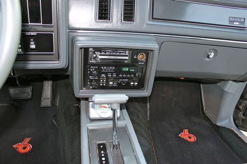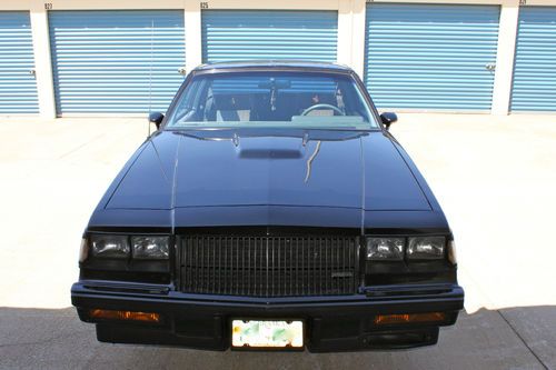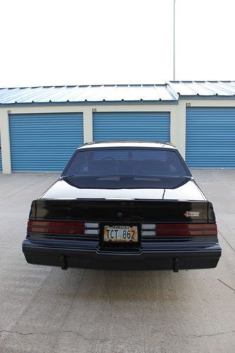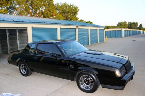 1987 stock Buick Grand National. Approx. 65K miles. 3.8 Liter V6 Turbocharged Engine. Car is a t-top with the following options: power windows, power locks, digital dash, AM/FM cassette, power mirrors, rear defogger, tinted glass, posi rear, cruise control, delay wipers and tilt. Garaged since new. No paint work that I can detect--original black paint. This car has never been driven in the snow and has no rust. This was a show car for the previous owners. Car has relatively new 225/60r15 Goodrich G-4 Sport tires. Doors shut perfect with no sagging. The interior is excellent condition. This car is completely stock, outside of the security system and extra turbo gauge added by the previous owner.
