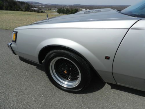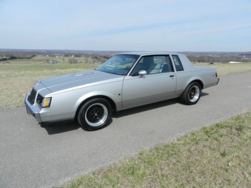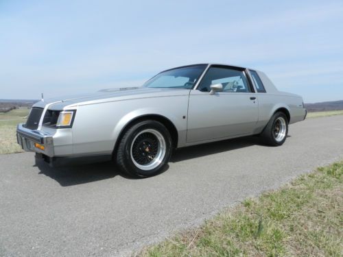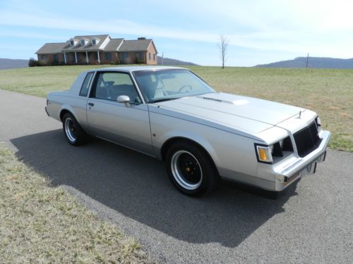 1987 Buick Regal T Type. Very rare and desirable. 54,901 low and well cared for miles. Excellent condition, 9.8 out of 10 inside and out. 3.8 intercooled turbo 6. Gray with gray interior. Paint, interior and body lines are near perfect, laser straight. No cracks in the dash or steering wheel, carpet and seats are tear and stain free. Bumper fillers have no cracks or fading, chrome bumpers are perfect with not one spot of surface rust. Completely rust free underneath, all weatherstripping and trim are also perfect. GNX ARE Deep Dish 16inch mesh wheels with 245/50/16 tires in excellent condition. Garaged it's entire life. Runs and drives great, loads of power, very smooth and noise free. All factory power options work great, even the factory boost and rpm gauge. Some very tasteful mods have been added while keeping dependable driving in mind, no bugs in the car or the tune, turn the key and drive. This car unlike so many others like has been sorted out, truly the best of both worlds, performance and great street manners. Pump gas car, NO alcohol. Drive it to the track and run mid to high 11's. Turn the boost up and add some race gas run high 10's low 11's. Going fast with class. Show worthy condition, even better in person, pics don't do it justice. I will list mods below. Clean clear title in hand, NO wrecks or liens. No Reserve auction, this is not a feeler add, the high bid will win the car. I'm making room for another toy. Don't miss the chance to own a Turbo Buick that is sure to gain in value. I you have 0 or negative feedback contact me before bidding. The car is to be paid for in full within 5 business days of auction end in the form of a cleared certified check, wire transfer or cash on pickup. I am willing to ship at the buyers expense. If you have any questions or would like more detailed pics I can be reached at 606-278-3207. Thanks and good luck bidding. TE60 Turbo 3inch Downpipe Turbonetics wastegate BGC stretch intercooler 50lb MSD Injectors Turbo Tweak Chip Direct scan with Laptop Adjustable Fuel Regulator Walbo 340 Fuel Pump Ported Heads/Intake, Cometic Gaskets 212/206 Comp Cam Roller Timing Chain Kenne Bell Cold Air/K&N RJC Powerplate ATR 2 1/2 Stainless Exhaust Borla Stainless Mufflers Pat's 3200 Convertor CK Billet front shaft/pump upgrade/servo G80 Rear/3.42 gears Moser 31 spline axles, c-clip eliminators Airbags Adjustable upper/lower control arms Poly bushing suspension Line Lock 145mph speedo, VDO gauges, oil/fuel/boost/temp Many other custom parts |