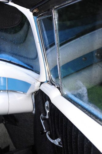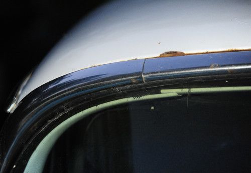 It shows slight rust around windshield and on trim and the vent between glass and hood. Some rust damage to bottom of passenger front fender under paint all of which developed in storage.