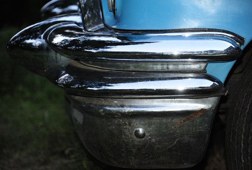 Chrome: RECHROMED 1993 then garaged stored 20 years. Ninety-five percent good with light rust in lower front recesses and one small spot in recess on back bumper near driver side.