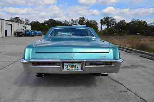 1965 BUICK RIVIERA REST O ROD, 72K MILES, AUTO, A/C,TOTAL FRAME UP RESTORATION OF ORIGINAL KENTUCKY CAR BODY, 1958 BUICK METALLIC SEA MIST GREEN, NEW NSO WINDSHIELD, 60 LED 3RD BRAKE LIGHT WITH SQUELCH SYSTEM,NEW HEADLIGHT MOTORS WITH ALL REBUILT LINKAGE, HEATER CORE AND WIPER MOTOR, RELAYS USED, WAS NECESSARY, WATKINS 100 AMP ELECTRICAL DISCONNECT SWITCH, REBUILT 400 TRANE WITH 2300 STAHL CONVERTER, 323 REAR END, HEADLIGHTS HD HALOGEN HIGH AND LOW BEAMS, RUNNING FOG LIGHT COMBO, FLOW MASTER 40S WITH RESONATORS, TRUNK TOTAL CUSTOM CARPET, ENGINE IS BUICK GUIRO CARMEN FASO 401 BUILT 30 OVER MILD CAM (EVERYTHING NEW), GRIFFIN RADIATOR WITH ALUMINUM OVER FLOW TANK, POWER MASTER 140 AMP ALTERNATOR, A/C NEW 134 CONDENSER EVARPATOR, ALL HOSES AND NSO COMPRESSOR, MALORY IGNITION AND TAYLOR WIRES, ROCHESTER CABUTOR WITH CUSTOM AIR CLEANER AND VALVE COVERS, MINI GEARED STARTER, OPT BATTERY HD CABLES, NEW MOTOR AND TRANS MOUNTS,18 INCH BOYD CODINGTON SMOOTHLY 2 WHEELS, 245/45 ZR18 FRONT, 255/55 ZR18 REARS, AEROSPACE RACING FRONT DISC BRAKE CONVERSION 13 INCH ROTORS, CORVETTE DUAL VACUUM BOOSTER WITH MASTER CYLINDER, REMO 12-1 STEERING GEAR, KONA SHOCKS, 1 1/4 PST FRONT/REAR HD SWAY BARS, NEW SPRINGS BUSHING BALL JOINTS, UPPER CONTROL ARMS AND TIE ROD ENDS AND DRAG LINK, 7 RARE PARTS REAR SUSPENSION BUSHINGS, ALL NEW BRAKE LINE AND FUEL LINES WITH HOLLY ELECTRIC FUEL PUMP, DRIVE SHAFT 4 NEW U JOINTS AND CENTER SUPPORT AND BALANCED, NSO INTERIOR WITH UPGRADED REAR SEAT BELTS, AUTOMETER GAUGES WITH CO METER, NEW CASS STEREO AND FRONT AND REAR SPEAKERS,PAINT IS NEAR PERFECT,CAR RUNS AND DRIVES GREAT, 4000 MILES ON DRIVETAIN, INSPECTION IS FINE, EXCLUSIVE MOTORS 922-F EAST 124TH AVE TAMPA FL 33612, 727-697-7541 PLEASE CALL WITH ANY QUESTIONS THANKS PRO TOUR READY, HAVE OVER A 100+ PICS OF CAR, $299 DEALER FEE AT END OF SALE TO COVER PAPERWORK AND OVERNIGHTING THANKS