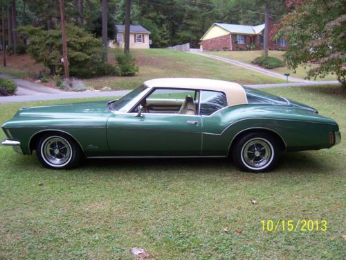 HERE WE HAVE A 1972 BUICK RIVIERA BOATTAIL. WE TRADED FOR THE CAR A FEW DAYS AGO. THE CAR IS A NICE OLDER DRIVER. IT SHOWS 55K MILES BUT DON'T KNOW IF THEY ARE ORIGNAL OR NOT. IT HAS HAD ONE PAINTJOB SOMETIME DOWN THE LINE STILL SHINEY BUT DOES HAVE SOME MINOR SPOTS STARTING TO SHOW. THE CAR DOES HAVE NICE INTERIOR FOR THE YEAR. THE CAR SHOWS TO BE SOLID. IT DOES HAVE A GOOD RUNNING 455 WITH A 400 AUTOMATIC TRANSMISSION. IT DOES HAVE A/C BUT WILL NEED TO BE CHARGED. IT HAS THE FACTORY CHROME BUICK ROAD WHEELS & GOOD TIRES. IT HAS NEW FLOWMASTER EXHAUST ALSO. JUST LOOK @ THE PICS BID WHAT YOU THINK IT IS WORTH. CALL 706-252-5921 FOR MORE INFO ON THE BUICK. THE CAR WILL BE SOLD AS-IS WHERE-IS WITH NO WARRANTIES AT ALL WRITTEN OR IMPLIED. THE BUYER MUST MAKE CONTACT 24HRS END OF AUCTION. BUYER WILL MAKE A $500 NON REFUNDABLE DEPOSIT 48HRS END OF AUCTION. BUYER WILL MAKE FULL PAYMENT 7 DAYS END OF AUCTION NO EXPECTIONS!!!!!!!!