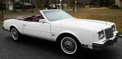 I AM THE 2ND OWNER OF THIS RARE BUICK CONVERTIBLE. THIS IS ONE OF 442 MADE WITH THE 8 CYLINDER, 45 OTHERS WERE MADE WITH THE 6 CYLINDER FOR 1984. THIS IS THE BEST COLOR COMBO OUT THERE. SHE IS STILL WEARING ITS ALL ORIGINAL FACTORY WHITE PAINT THAT SHE LEFT THE FACTORY WITH. NO ACCIDENTS AT ALL. INTERIOR IS STILL REAL CLEAN. NO TEARS, OR RIPS. ALL CHROME AND BRIGHT WORK REAL CLEAN. THIS BUICK ONLY TRAVELED 51000 MILES IN THE 29 YEARS. POWER TOP, ICE COLD A/C, ALL WORKS. WHAT A GREAT SUMMER AND SPRING CAR . YOU WILL GET THUMBS UP WHEREVER YOU GO. DRIVING THIS CAR IS TOTAL STRESS RELIEF. BACKGROUND AND HISTORY