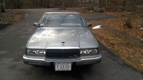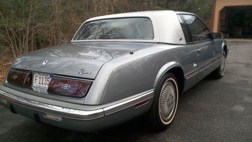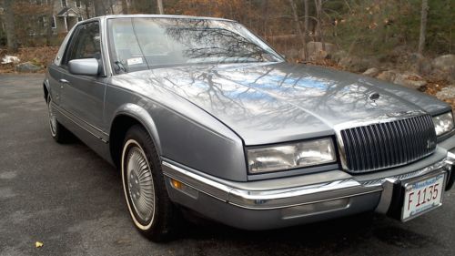 For your consideration is this exceptional survivor automobile. I've owned this car for almost two years and in that time took care of a few very minor cosmetic blemishes and it now presents as a nearly brand new car. Original special order Medium Slate Metallic paint still is in excellent condition, almost unheard of for a GM car of this vintage. Options include leather seats, special order turbine alloy wheels, half landau top, digital dash, car phone, power trunk pull-down and dual 16 way power front seats. This vehicle spent the first part of its life in Florida before being brought up to MA in 2004. As a result, it has NEVER, to my knowledge, been driven on snow or on salty roads. Looking at this car on a garage lift, the underside looks practically brand new as well. I have loved this car and kept it covered and garaged throughout my ownership, and the previous owner kept it garaged and rarely drove it as well. I hate to sell this car, but must because I've recently inherited an antique car that has been in the family for more than 40 years, and need the storage space for it, as I have only one garage bay. In full disclosure, the Riviera's hood has a very small repairable dimple in the front passenger corner and the radio has some intermittent static and tone issues. The driver's door lock lever does not go all the way down all the time. This is an exceptionally rare car. A CompNine assessment on the vehicle shows only 5 produced in this color combination with these options. Buyer pays shipping in the continental US. More pictures can be taken of specific areas upon request. Folder of vintage ads and magazine articles from the year/era of this car, along with extremely rare 1990 Buick dealer and selling manuals included in the sale. |