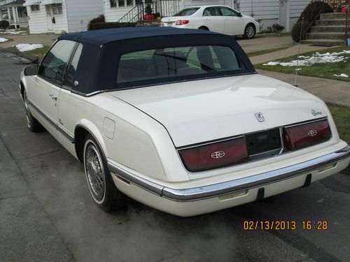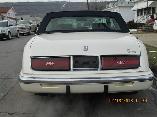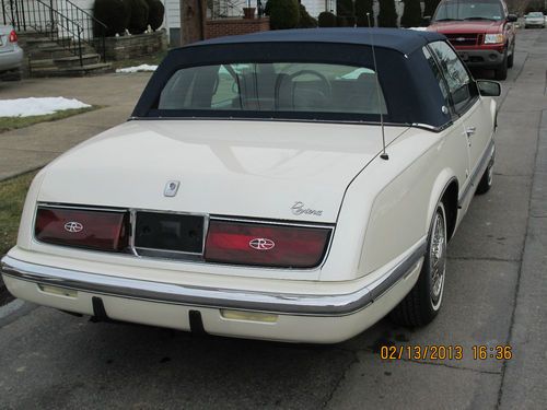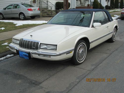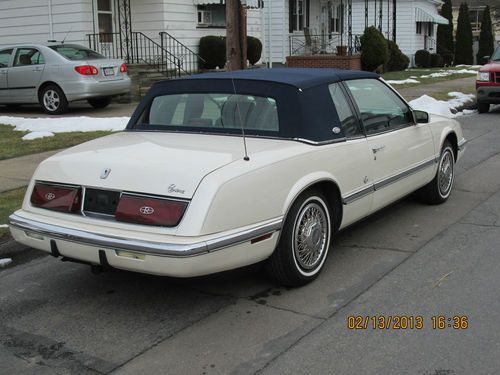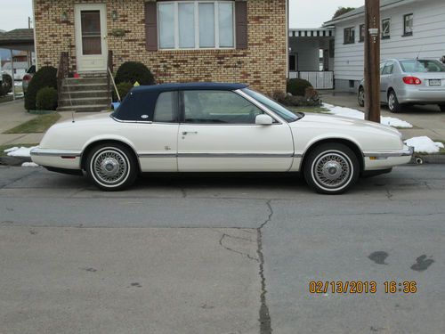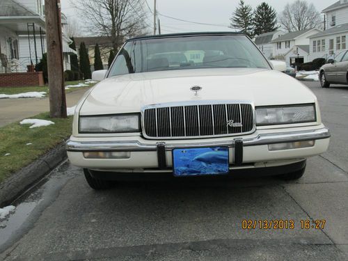 CHECK OUT THIS GORGEOUS 1992 BUICK RIVIERA V6 with AUTOMATIC TRANSMISSON & POWER EVERYTHING with ORIGINAL DIAMOND WHITE PAINT & NAVY BLUE CARRIAGE TOP MOSTLY GARAGED ** ONE LOOK AT THIS VEHICLE & YOU CAN TELL ITS A SPECIAL WELL TAKEN CARE OF RIVIERA ** VEHICLE SPEND ITS WHOLE LIFE IN FLORIDA ** A CLEAN TITLE & CLEAN CARFAX ( COPY AVAILABLE ) CAR HAS NEVER BEEN SMOKED IN ** THE CAR WAS PARKED IN MY GARAGE ALL WINTER SO IT NEVER SAW THE PA. SNOW OR SALT ** I HAD IT INSPECTED IN APRIL & BEGAN DRIVEING IT ** SO THERE WILL BE MORE MILES ADDED ) IT RUNS GREAT WITH NO MAJOR MECHANICAL ISSUES ** THE FOLLOWING REPAIRS HAVE BEEN DONE WITH IN THE LAST 10,000 MILES ** NEW BRAKES FRONT & REAR ** NEW BATTERY ** NEW FRONT STRUTS ** NEW IGNITION CONTROL MODULE ** NEW AC COMPRESSOR ** NEW RADIATOR & HOSES ** NEW SERPENTINE BELT ** NEW STARTER ** AC RECHARGE & BLOWS COLD ** TIRES HAVE ABOUT 70% TREAD LEFT ** NEW OIL & FILTER ** ELECTRONICS ARE ALL GOOD ** ORIGINAL OWNERS MANUAL ** I HAVE ALL THE RECEIPTS TO DOCUMENT ALL THE REPAIRS PLUS MORE.** THE PAINT & CHROME ARE JUST BEAUTIFUL & YOU WILL NOT FIND A SPECK OF RUST ANYWHERE ** THE INTERIOR IS ALSO SUPER CLEAN WITH NO TEARS ,NO SMOKE ORDERS ** PA INSPECTION GOOD THRU 4/14 ** YOU WILL NOT BELIVE HOW QUIET TIGHT SMOOTH & COMFORTABLE RIDE YOU WILL ENJOY **.CHECK OUT THE PICTURES ** EMAIL OR CALL ME IF YOU HAVE ANY QUESTIONS PAUL 570 288 0784 after 1 pm EST ** SELLING AS IS CONDITION ** ATTENTION TO 0 FEEDBACK BIDDERS YOU MUST CONTACT ME BEFORE PLACEING ANY BIDS OTHERWISE I WILL CANCEL YOUR BID & BLOCK YOU OUT **THERE IS ONE MINOR ISSUE IT NEEDS A CAM SENSOR I HOPE TO HAVE THAT ISSUE RESOLVED ** SENSOR DOES NOT AFFECT THE DRIVING IN ANY WAY ** ITS A $$50.00 REPAIR I HAVE THE SENSOR IN HAND THANKS FOR LOOKING