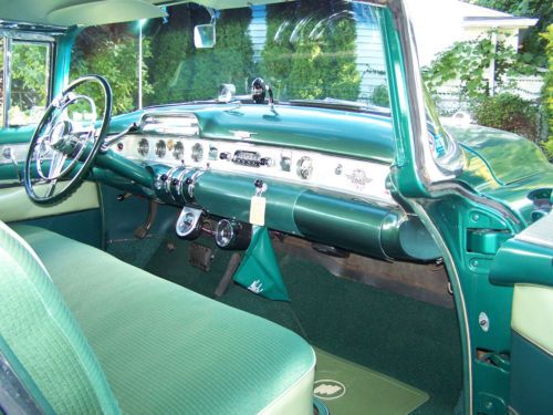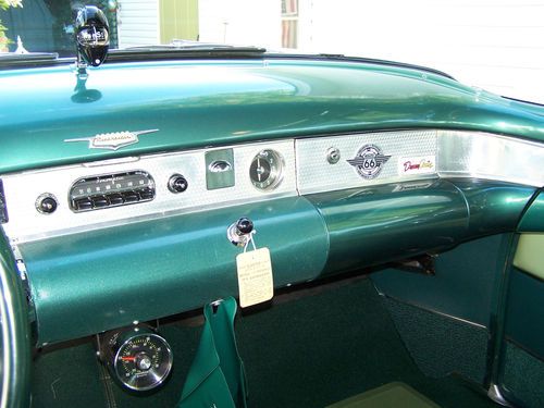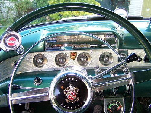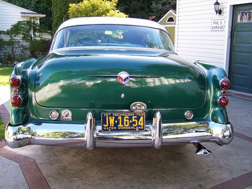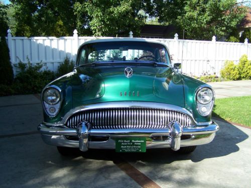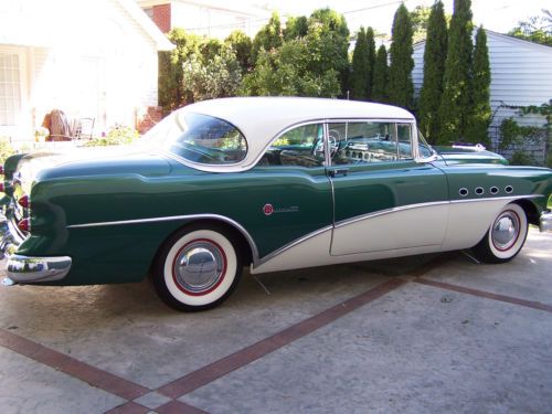 This is a 1954 Buick Roadmaster Model 76-R Riviera two door hardtop. I purchased the Buick in May, 2009. It was repainted by a previous owner in the factory color, "Sharon Green ". The roof is "Artic White". The front and rear bumpers were rechromed about the same time. The car is otherwise ORIGINAL. The original factory interior, is a combination of cloth and leather. The undercarriage has some surface rust from almost sixty years of use, but is solid with no rust out. This is a partial list of what repairs and service I have performed: installed trunk cardboard kit. (05-2009), rebuild generator, voltage regulator, rebuild Carter carb (06-2009), four "Diamond Back" Radial wide white tires( 08-2009), install seat belts (08-2009), install aluminized exhaust system (09-2009), rebuild fuel pump (10-2009, total rebuild of transmission (11-2009), new carpet set, complete tune up (11-2009), rebuild starter (05-2010), install electric fuel pump (05-2011), front brakes rebuild (05-2012), new battery (07-2013). The oil was changed at regular intervals. I have never had any overheating issues. The photos of the body show small bubbles in the paint, and damage to a trim piece. The Buick runs and drives out very well. It has power steering, windows, and power seat. Everything works except the radio and clock. All hoses and belts were replaced. It has the Dyna-Flow automatic transmission. You will get a few drops under the engine when parked. This Buick is a great road car with a comfortable ride.( The transistor radio under the dash does not come with the car). I will leave the tachometer, compass, steering wheel spinner, and traffic viewer in the car.