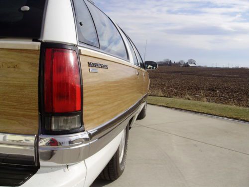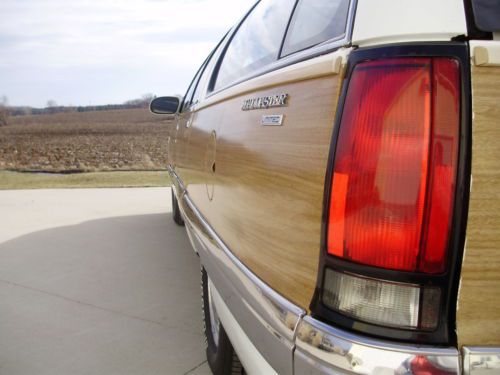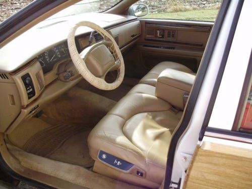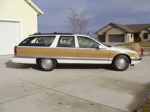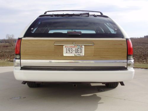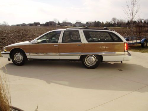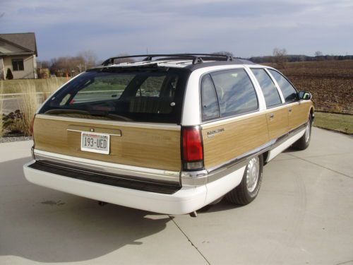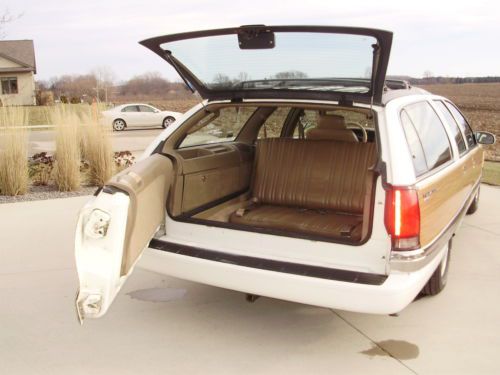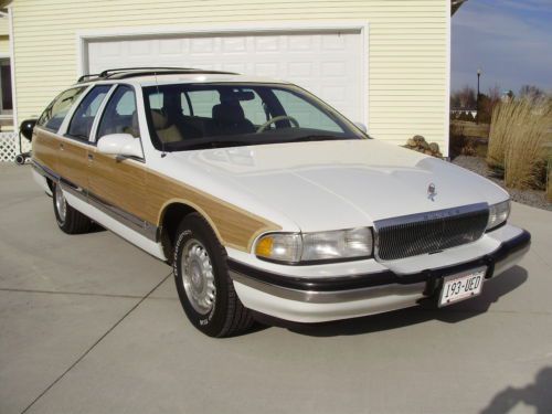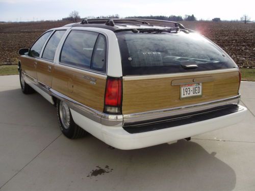 Listing the "Family Truckster". This is a very nice example of the Buick Roadmaster wagon. It has 164,000 well cared for miles. Oil changed every 3000 miles and maintained very well. The inside has no flaws, tears, stains or mars. The exterior is in good condition, but not perfect. The paint on the rear bumper is flaking off in some places, and the left rear quarter did have a repair aft of the gas door. The left front fender has been replaced with another white color on it. The vinyl wood is all in good shape on the body, some areas on the trim have faded. All of the glass is in excellent shape. The motor runs very strong, does not leak, smoke or use oil. Drives straight, stops as it should, and a good driver in general. I have used this car as my daily driver and would not hesitate to take it on any trip. It gets better gas mileage than my v-6 SUV. I have replaced the exhaust from the cats back with Flowmaster 52 series and eliminated the exhaust resonators. Has a slight tone at idle and a growl when you put your foot into it. Replaced A/C compressor and converted the system last year. Replaced fuel pump and sender. New air shocks. This car did not have the airbag suspension from the factory. Tires have at least 75% tread left. I have tried to remember all that we have done and been as descriptive as possible. If you have questions please do not hesitate to ask. If you want specific photos I am glad to send them.