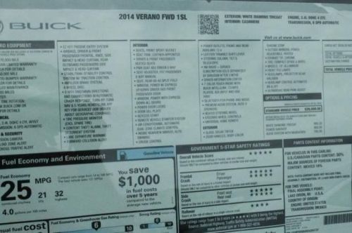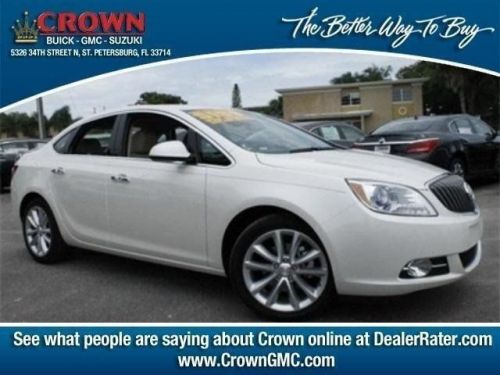 , Before Discount:$30,575.00, Dealer Discount:($1,671.00), Cash Incentive:($750.00), Special Discount:($400.00), Internet Price:$27,754.00, Total Savings:($2,821.00)!BACK-UP CAMERA, LEATHER, BLIND SPOT MONITOR, BLUETOOTH, MP3 Player, KEYLESS ENTRY, 32 MPG, SAT RADIO, The 2014 Buick Verano luxury sedan is as elegant as it is beautiful. Verano's signature black chrome waterfall grille and chrome accents, jewel-like projector beam headlamps, stunning 18-inch forged alloy wheels and sophisticated sculpting make fall in line with Buick's impeccable sense of design. Inside the Verano luxury sedan you'll find everything has a purpose. From the premium materials to the right amount of trunk space, Buick's designers went out of their way to make Verano comfortable and purposeful. You will find premium craftsmanship and design everywhere you look along with exceptional seat comfort. When it comes to the driver, Verano makes you the center of attention, keeping you in control while putting you at ease. The Verano delivers a refined, responsive performance with a powerful 2.4L dual-overhead-cam 4-cylinder engine, variable valve timing and E85 capability, while the Verano Turbo delivers impressive power with its 2.0L Ecotec 250hp 4-cylinder turbocharged engine and 0-60 mph in as little as 6.2 seconds. This luxury sedan is thoughtfully engineered to grip the road with full-function traction control and responsive maneuverability. The Verano luxury sedan is loaded with technology that helps you focus on the drive while staying connected. Take to the road and let the outside world slip away thanks to the advanced QuietTuning technology. Then personalize your drive with advanced connectivity technologies such as Buick IntelliLink and available GPS navigation system. Attention to detail is evident in the number of standard safety features in the Verano. Drive confidently knowing you are backed by 10 air bags, ABS, full-function Traction Control, 6 months of OnStar with Automatic Crash Response, and a comprehensive child seat LATCH system. Crown Automotive Group serving Tampa Bay Florida offers great low prices, rebates and incentives for new Group & used Group cars, vans and SUVs to all of our neighbors in St. Petersburg, Largo, Clearwater, and Pinellas Park. Our Expert Service & Parts staff assist our Florida customers keep their Group vehicles in great shape.