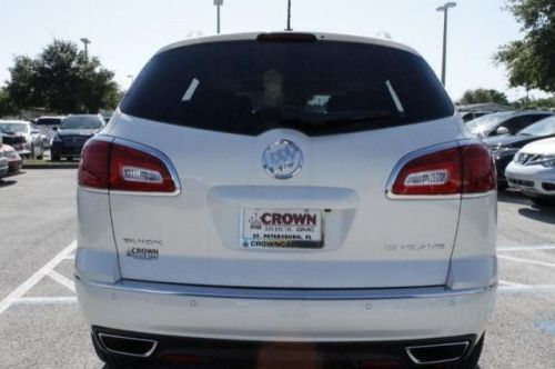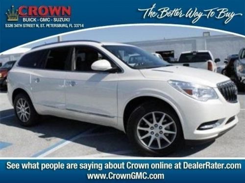 , Before Discount:$46,365.00, Dealer Discount:($2,611.00), Cash Incentive:($1,500.00), Bonus Cash:($500.00), Special Discount:($400.00), Internet Price:$41,354.00, Total Savings:($5,011.00)!BACK-UP CAMERA, LEATHER, BLIND SPOT MONITOR, BLUETOOTH, MP3 Player, CHILD LOCKS, 3RD ROW SEAT, KEYLESS ENTRY, HID HEADLIGHTS, SAT RADIO, POWER LIFTGATE, One look at the 2014 Buick Enclave, and you will realize it is a sight to behold. Its prominently featured black chrome waterfall grille and LED-infused head and tail lamps showcase its modern design. Together they add up to an impressive look for Buick's flagship crossover. Rich interior colors, ambient blue lighting, tri-zone climate controls, three rows of first-class seating provide room for 8, and QuietTuning technology creates a more comfortable environment that makes your driving experience better than ever. Working effortlessly with the updated 6-speed transmission, Enclave's 288-hp 3.6L V6 engine gives a powerful performance through direct injection and Variable Valve Timing. Dual Flow Dampers in the suspension system minimize impact and help reduce noise and vibrations from every road surface. Together, these technologies deliver an unparalleled drive that's controlled, quiet and efficient. The available Intelligent AWD system in this luxury crossover is always one step ahead. Constantly monitoring the traction of all four wheels, it kicks in automatically in the toughest road conditions. When the road calls, answer hands-free. From IntelliLink voice-controlled connectivity, to Bluetooth to the built-in Color Touch Radio, the finest luxury crossover wouldn't be complete without the latest innovations. Also standard is ultrasonic rear park assist which will alert you when you're getting too close to an object or structure. The industry's first front center air bag is at the forefront of Enclave's safety innovations. Together with its already robust list of safety advancements, like available Side Blind Zone Alert with Cross Traffic Alert and standard StabiliTrak with Traction Control, the new Enclave keeps you and your passengers safe, comfortable, and ready for the road. Crown Automotive Group serving Tampa Bay Florida offers great low prices, rebates and incentives for new Group & used Group cars, vans and SUVs to all of our neighbors in St. Petersburg, Largo, Clearwater, and Pinellas Park. Our Expert Service & Parts staff assist our Florida customers keep their Group vehicles in great shape.
