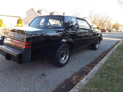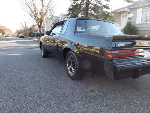 UP FOR SALE IS A VERY RARE OPPORTUNITY TO OWN THIS 1987 GRAND NATIONAL WITH ONLY 1,980 ORIGINAL MILES. THAT'A RIGHT 1,980 MILES THIS IS A 3 OWNER CAR I HAVE OWNED IT FOR THE LAST 5 YEARS EVERYTHING ON THE CAR IS PERFECT THIS IS A SHOW QUALITY CAR NOT YOUR DAILY DRIVER BUT A TRAILER QUEEN.ALL ORIGINAL EXCEPT FOR THE OIL AND FLUIDS ORIGINAL WINDOW STICKER AND MANUALS COME WITH CAR, ALSO VERY HARD TO FIND THE ORIGINAL BATTERY CAR STILL HAS PART STICKERS INTACKED ON GAS TANK AND FRONT AND REAR SUSPENION ,HEADLINER STILL PERFECT PAINT IS ONE OF THE BEST PAINT JOBS GM PUT OUT ON THESE CARS AND ALSO ALL ORIGINAL ,CENTER CONSOLE STILL HAS PLASTIC FILM ON IT ALSO STILL HAS BRAND NEW SMELL WHEN YOU OPEN THE DOORS THE ENGINE CONPARTMENT IS SPOTLESS CAR WAS UNDERCOATED FROM DEALER AND I HAVE THAT BILL OF SALE IF YOUR LOOKING FOR A PIECE TO ADD TO YOUR COLLECTION OF AMERICAN HISTORY MUSCLE CARS THIS IS WITHOUT QUESTION THE ONE NO DISAPPIONTMENTS AND A MUST SEE TO BELIEVE THE CONDITION ANY QUESTIONS FEEL FREE TO ASK