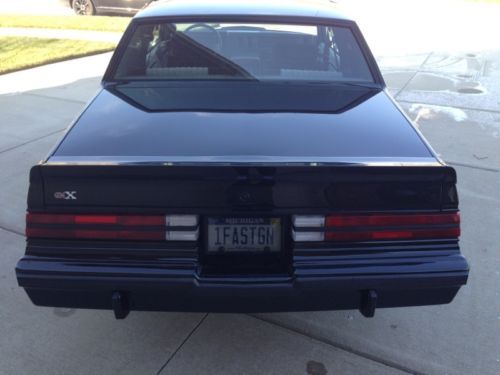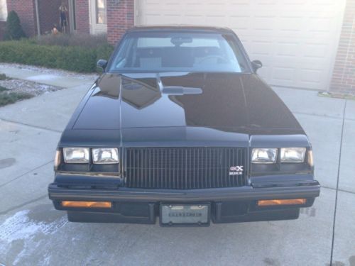 1987 BUICK GRAND NATIONAL-26,000 documented miles. This car has been stored and well cared for it's entire life and never a daily driver. The car is fully loaded with t-tops and the original t-top storage bag. The car has not been rebuilt, hit, or restored. The car has had one very high quality $8000 repaint 2 years ago when the GNX wheel flares and fender vents were added. The wheels are 20 inch symbolic's with Toyo Proxes ($4500), yes I have the original wheels that came with the car with the original eagle gt's mounted to them. The car has GNX badging and dashboard plaque added, it is NOT a real GNX, it IS a real Grand National. The car has never been to the track, strip, or abused. The engine, transmission, and rear end are original to the car. The air conditioning, heat, radio, cassette, cigarette lighter, power windows, power locks, power antenna, power trunk, opera lights, under hood light, trunk light all work. The car has an upgraded turbo, chromed turbo cover and tubing, upgraded intake and fuel injectors all very tastefully done, the car runs on regular gas. The interior is 100% stock except for one gauge mounted to the pillar. I also have all of the original parts that came with the car. Please call or email me with any questions 586-202-5275, michael.laskowski@wslife.com .