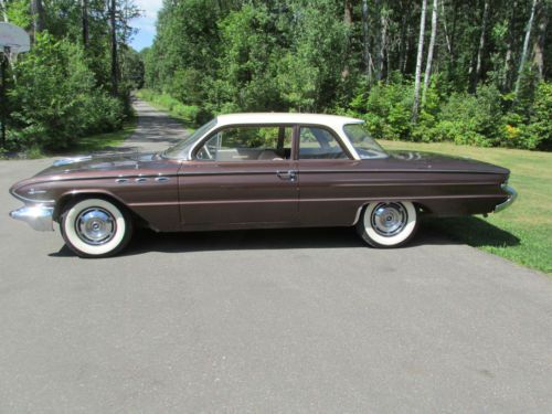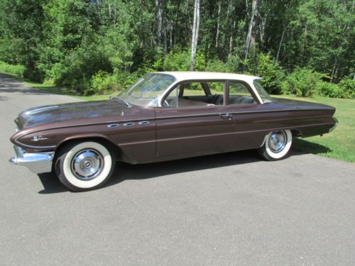 1961 Buick Le Sabre 2 Door Sedan. One of only 5300 made in 1961 in the 2 door sedan body style. This car shows 63,000 miles and is believed to be original mileage. 364 Nailhead V8, newly rebuilt Dynaflow automatic transmission. This car runs and drives nicely and everything works as it should. One driver quality repaint in the original brown and creme colors done 15 years ago. Nice body, chrome, stainless, and glass. I just went through the brakes and it has wide white wall tires. The interior is original and needs to be redone to be nice -as some of the seat seams are cracking and coming apart. There are a couple of rust spots in the floor pans and inner rockers but nothing major. This car presents well and looks nice as it is and is retaining all of its original non-wearable parts. It is a great driver as it is or you could restore it how you like -original, lowered with some bigger rims for the pro touring look, or a period 60's style super stock drag racer etc. This is a nice car and considered a "10 footer" as it is not perfect by any means- It is still a 50+ year old mostly original car. Sold AS-IS with no guarantee or warranties implied. Car is available for inspection before the end of the auction. Buyer responsible for pickup and shipping or transport of the car within 21 days of auction end. Please email all questions. $500 deposit via Paypal or bank wire due within 3 days of auction end with balance due via bank wire within 7 days of auction end. Thanks and Good Luck!