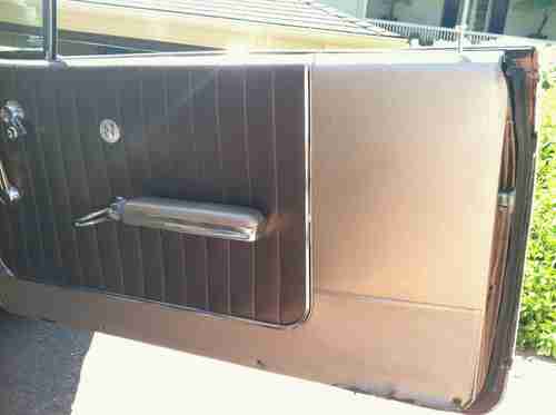 This beautiful car has had four owners including me. The first two owners had it for about 45 years and it was garage kept. The last owner had the car for about two years until i purchased it from him. The car was originally a tawny mist until 101 auto-body out of Richmond, CA, finished painting it a beautiful root beer brown with the original white top. All interior and engine parts are original to the car. New Magnaflow duel exhaust recently installed. Radiator has been rebuilt as it was not holding coolant well. Runs very well and built to last. I also installed new struts and brakes to ensure driver's safety. Only problem is that the heater doesn't work. all windows work.. I just rolled them down for the photos.