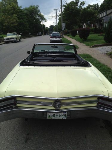 Classic 1965 Buick LeSabre Convertible. I've owned the car for seven years and have done the following: new brakes, shocks, exhaust system, top & refurb motor, fixed drive shaft, painted, tune up, etc. While not a show car (yet!), this is a fantastic Sunday drive-with-the-top-down head turner that runs great & is an absolute joy. The odometer reads 14,350 but hasn't moved since I bought it. The AM radio doesn't work, but I never really had it looked at. Other issues include cracked dashboard, some seat rips, door panels worn, minor body/paint blemishes, etc. It has a 401 motor. Comes with a cover and original manual, etc.