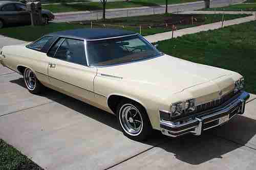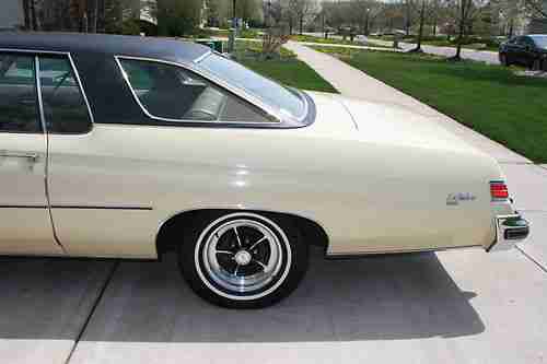 1974 Buick Lesabre Luxus coupe with 11,319 original miles, one owner vehicle until 2013. Factory options are as listed, 350 V8 w/4 BBL, AM radio, dual front and rear speakers, air conditioner, soft ray tinted glass, front and rear bumper guards, door guards, remote control outside mirror, carpet savers floor mats, tilt steering wheel, low fuel indicator, chrome plated wheels, body side moldings and vinyl roof. Has original HR 78-15 tires. A/C has been re built and blows very cold, all options, lights and signals work as they should. Drives straight and true with no issues. Interior is as new with no repairs needed, tinted glass is all chip and crack free with no sun fading, all door and trunk seals are soft and crack free, vinyl top looks new with no signs of moisture damage, trunk has original splatter paint and again no signs of moisture damage of any kind. Under carriage is solid with no repairs needed. Under hood has original clamps, hoses, decals and chalk markings. Comes with original window sticker, owner manual, dealer brochure, dealer invoice and receipts documenting mileage through the years. This is a garage kept car and looks to have all or most of it's original paint, never cut up or altered in any way. Please ask questions before bidding, bidders with less than 10 in feedback must contact me first or I will remove your bids. Vehicle can be seen at any time during auction.