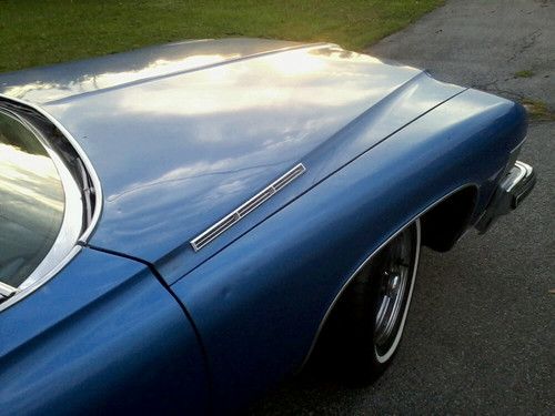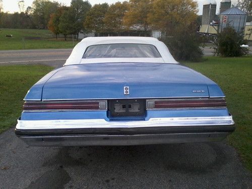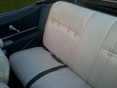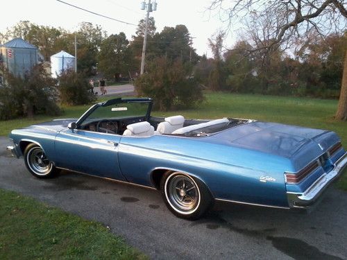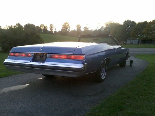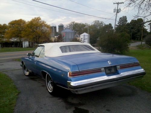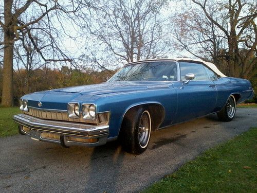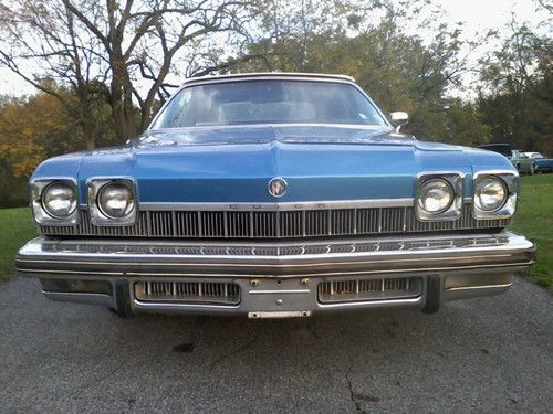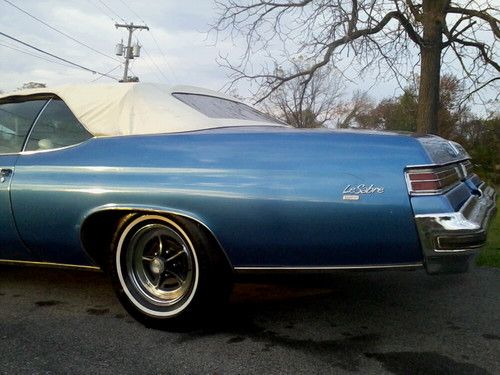 Here is a very nice, very clean 1974 Buick LeSabre Convertible. 5.7L 350 Buick motor. 71,320 original miles. This is the 'Luxus' model, which I believe was only offered for 1974 convertibles only. This is a seldom seen model, with only 3,627 produced. When's the last time you seen one? This is a good running, and driving car. Hop in, and drive. It is not perfect, but is in exceptional condition and is absolutely worth throwing some money at over time and having a high dollar, rare, convertible. Wheels are in good shape, and show well. Tires are in good shape too. Bumpers are nice, light scratches and fading, normal wear, still nice though. The paint has some scratches, and touch-ups and fading in 1 or 2 areas. Overall it shows quite well, but is far from perfect. 10-footer. The body has no rot, and is straight. Some rust bubbleing up around the LH rear qtr under the paint, see pic, is the worst rust on the body, and it's minimal. There's a few 'dime-sized' dings here and there, but not many. The top is in fair condition, goes up and down on it's own just fine, top is ok, has a small tear or 2, but is in good shape otherwise. I personally would eventually replace it, but is 100% functional and useable as is. Has clear plastic rear window. Comes with white vinyl boot cover. Cover has seemed to have slightly shrunk over time and is kind of a pain to put on, but maybe you can stretch it back out. Interior is in great shape. Carpet is decent, dash has no cracks. Door panels, arm rests, and trim in excellent shape. Has 8-track AM/FM radio. Back speakers still work, front is shot. All electrical functions front to back work 100%. No A/C. Seats are the only real issue with the interior. The front seat needs to be re-upholstered. It is ripped, and needs to be re-covered. The bottom half of the rear has 2 blemishes, that someone tried to repair? Other than that, the back seat is in great shape, and for that matter so is the rest of the interior. No power options, the crank windows go up and down perfect. All glass in excellent shape. Steering wheel and column looks great and functions perfect. Brakes work great, and car rides nice and smooth. Underbody is very clean, frame is solid, and all floors, with the exception of the rear drivers, are perfect. Not sure why this one area rotted out, given how clean the rest of the underside is, but, is a pretty simple repair for anyone who can weld, and is not that big of an area. Under the hood has fresh air filter, spark plugs and wires, and oil change. Also has new emergeny brake cables. Transmission shifts as it should. Car starts right up and runs good. The bad: Like I said, the body and top are nice, but not perfect, and the seats need attention. And the floorpan. The battery doesn't hold a charge if it sits for a few days. When it's started everyday it's fine. The heater core doesn't work, and has been disconnected and bypassed. I just haven't had time to fix it. Headlight buckets have pitting in the chrome, and so does the taillight trim. The exhaust has a light grumble, due to a leak at the manifold and y-pipe connection. Not bad at all, it's just not silent. I want whoever considers buying this car to have no worries or un-answered questions. Please call or email with any questions you have. I am looking for a fair price, and will accept a reasonable offer. Car will not be given away. Thanks for looking, and again, please call with any questions you have. -Ryan 585-520-2440. !!!!---->Please visit my Flickr photo page where you can find many more photos of the car. Simply go to Flickr.com, and go to caprala23's photo page. I will be adding more pictures tomorrow of inside the trunk and the underbody, and I can add more at you're request anytime.