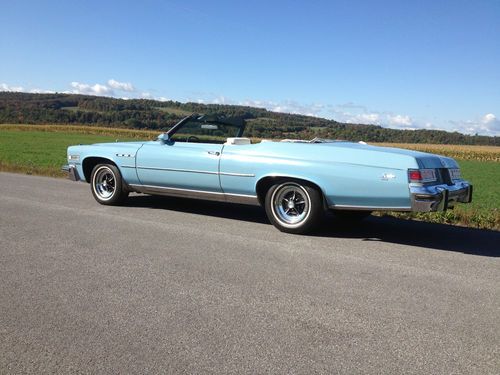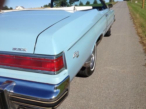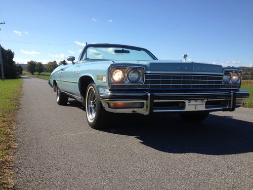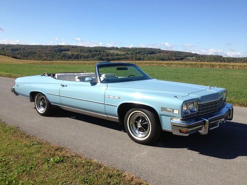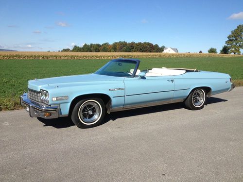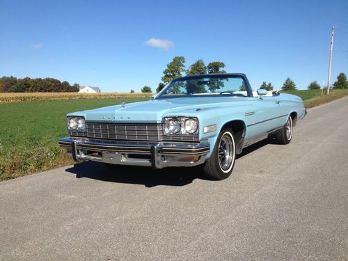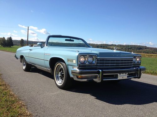 This is a beautiful, rust-free example of one of the premier mid-seventies floaters that spent the majority of its life in the midwest (not in the snowy Northeast) ready to be enjoyed! I just had a brand new top professionally installed by an outfit that specializes in scissor top installations, which has become are very narrow field of expertise. The body and paint are in excellent shape, as well as the optional rally rims that play off the body lines of this car like nothing else. The interior is equally stunning and all options work as they should. The stereo, power windows, power seats, speed sentinel all work great. I had her out for a cruise yesterday (it was 85 degrees out) and the A/C wasn't blowing quite as cold as I would like, so I am going to have it looked at and corrected before it goes to its new owner. I'm a stickler for details like that, because it those little things that bring the true charm to owning a classic car. The front seat has been freshly reupholstered, which included a new seat bottom and back and a re-cushioning, so it looks AND feels like new ! I would drive this car anywhere. I was at a classic car auction in January and watched a LeSabre convertible nearly identical to mine (same year, engine size, body color and wheels) go for $16,500, so these cars are beginning to get the recognition they truly deserve. Think of it, you can drive this car essentially like any other contemporary car -- no unusual routine to get it started, no fancy fuel additives needed, nice automatic transmission -- and your whole family can use it with the assurance that it should always perform well. I would let my teenage kids drive it in a heartbeat, unlike some classic cars that just have so much raw horsepower that they are almost dangerous to inexperienced drivers. These mid-seventies convertibles are really the best of all worlds for pure summer enjoyment and are beginning to see the commensurate uptick in their valuations as nicely preserved examples become more rare and sought after ever year. They have enough 'modern' refinements to make them very worry-free and accessible to you AND the wife, while at the same time transmitting that big engine, big car feel that has been lost along our way to the uber-digitized automotive reality we find ourselves shoehorned into with the cars of today. That is what makes them truly special. I love all classics, so I will consider trades as well. Thanks for viewing
