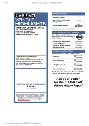 1998 buick lesabre custom sedan auto v6 fwd clean carfax new tires
